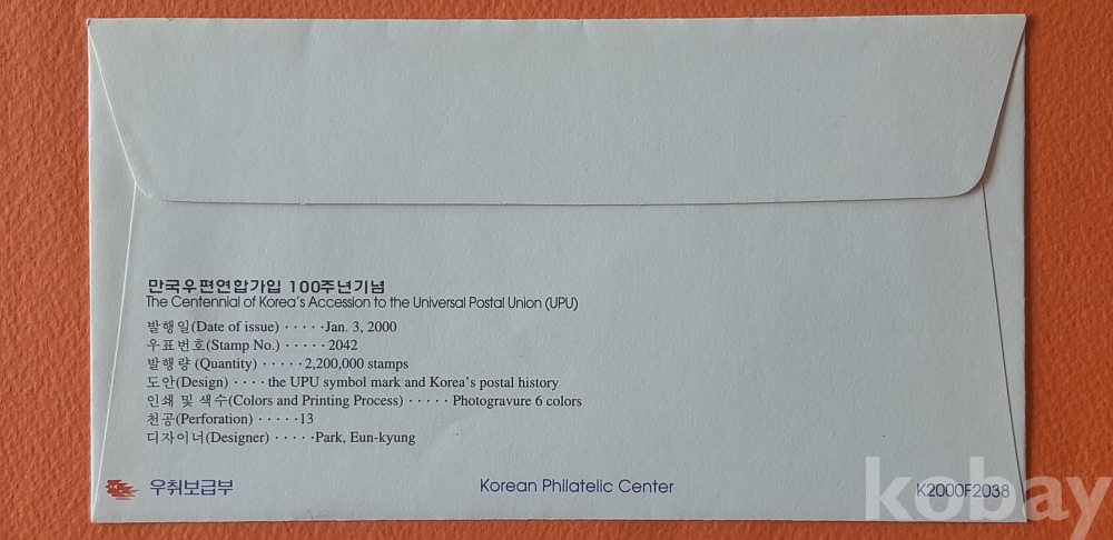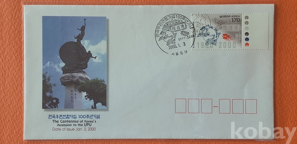 한국취미우표보급센터(현 우표박물관) 봉피와 까세를 사용한 초일봉피 입니다.