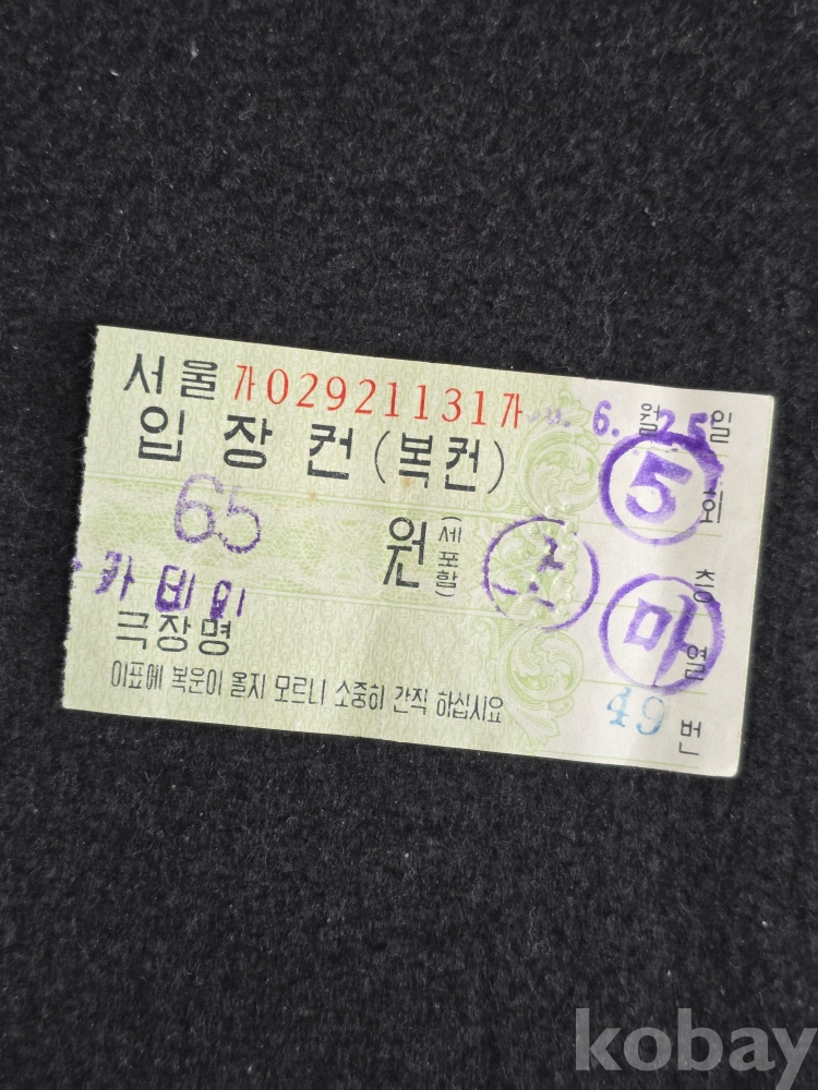 (((영화자료))) 1960년대 극장 입장권 (복권)(65원) (아카데미극장)