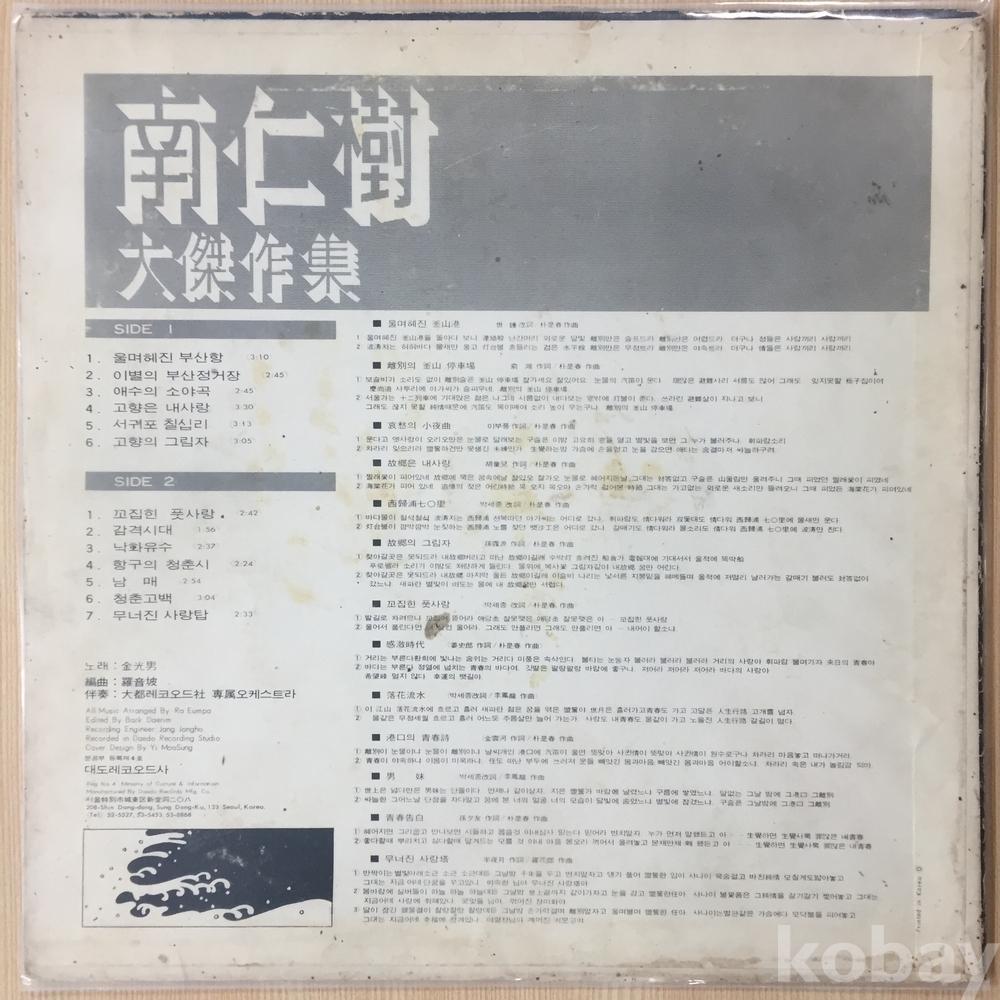 . 가요음반 대부분은 휘어짐이나 손상을 방지하기 위해 무지싱글자킷을 하나 더 사용하여 보관되었던 음반들입니다.