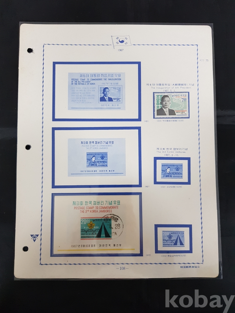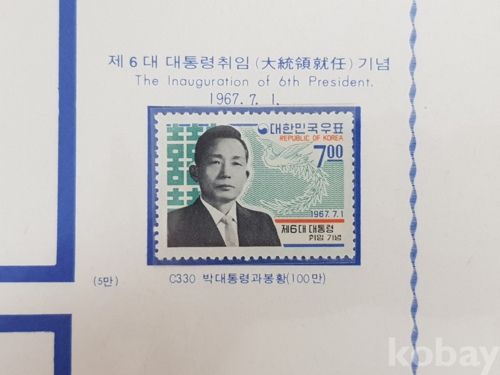 - 1967년 제 6대 박정희 대통령 취임 우표