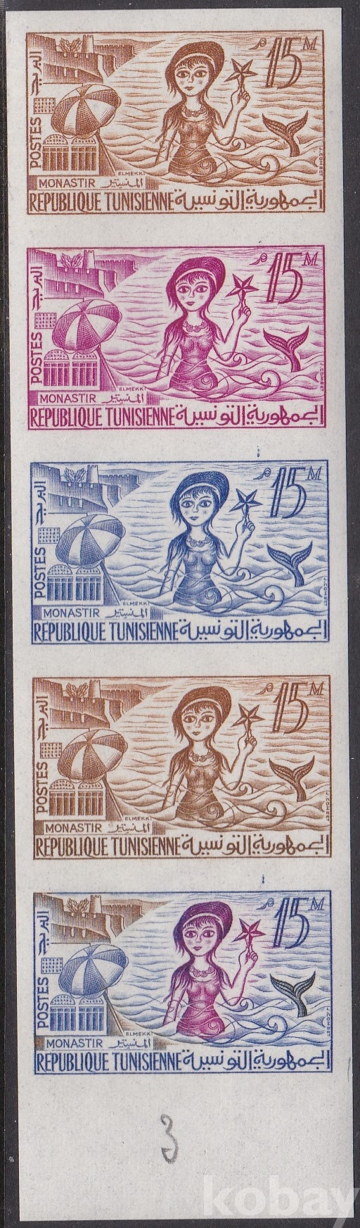 (하늘천) 튀니지 Sc348 관광, 모나스티르의 Skanes 해변, 인어, 컬러 트라이얼 프루프, 에세이