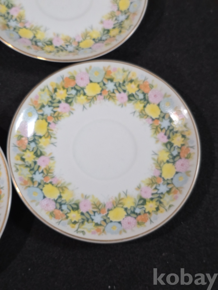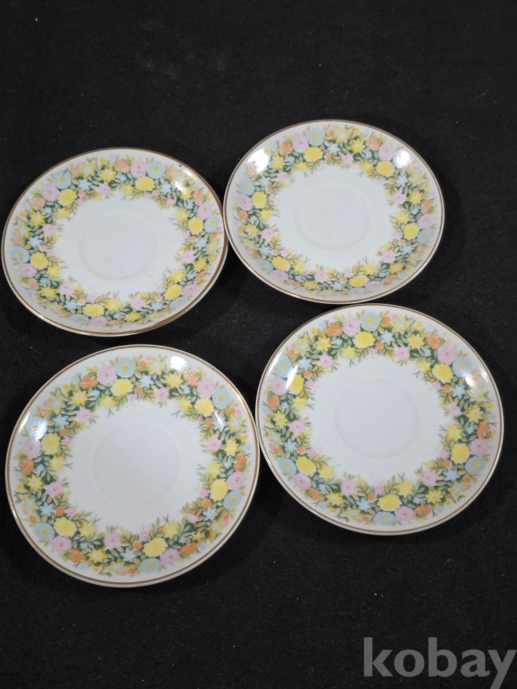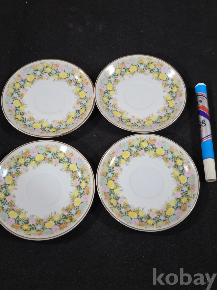 (((도자기잔받침/소서))) 오래전 행남사 GOLDEN APRICOT 들꽃리스 도자기 소서 (잔받침) 4개