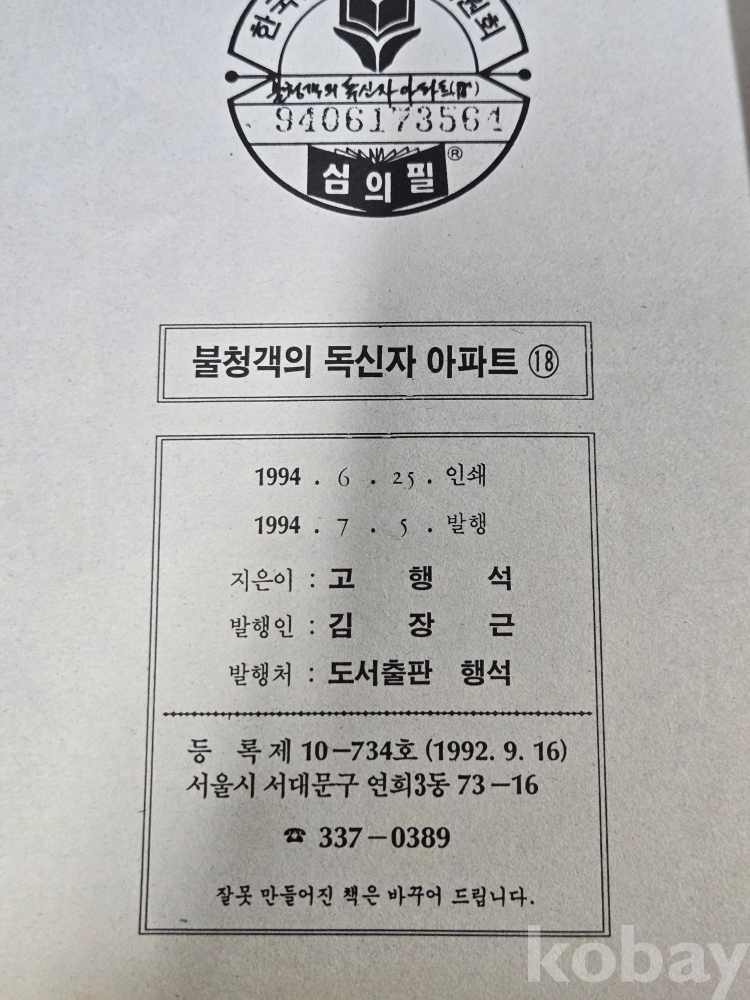 80-90 만화방 == 청소년 만화 = 고행석 글.그림 == 불청객의 독신자 아파트 == 18권 완질