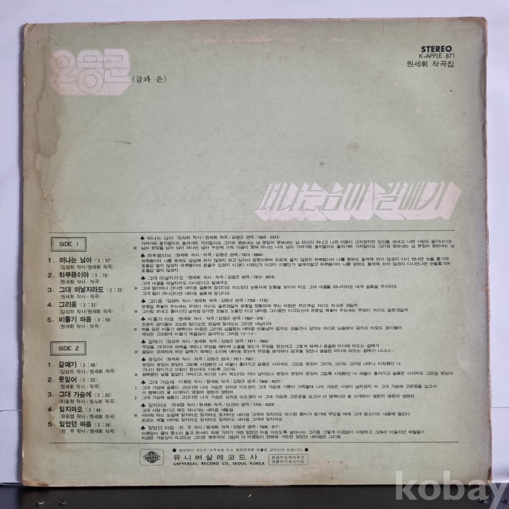 . 오래된 음반들은 잡음이나 튐, 백화등이 있을 수 있습니다. 올리기