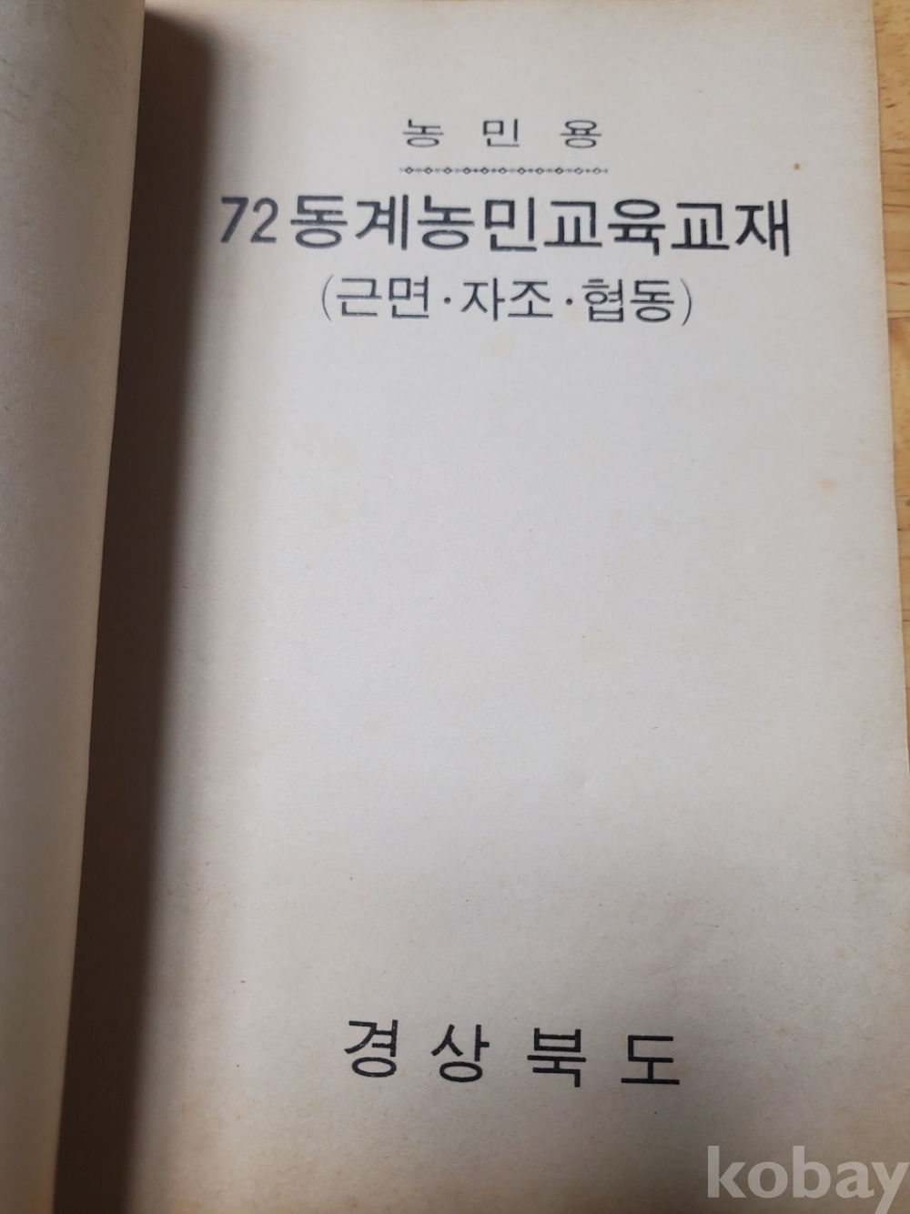 1. 72동계농민교육교재(근면 ․ 자조 ․ 협동), 경상북도, 1972년, 32쪽, 상태 상, 사진 참조