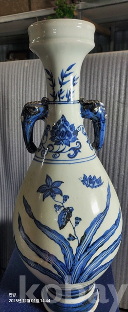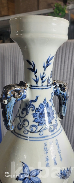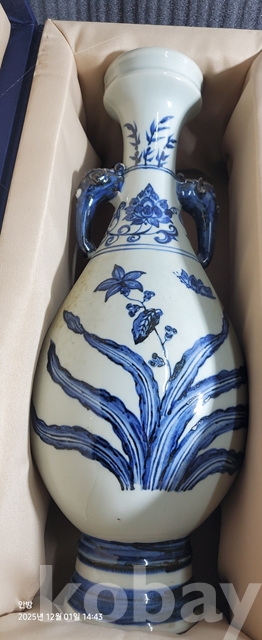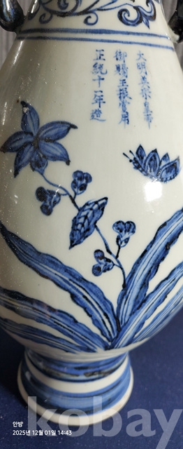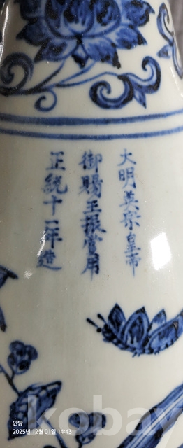 k-90.중국소장가집에서나온 고급상자에담긴 오래된 난초나비문 청화백자 황실도자기