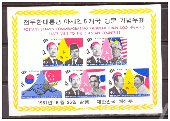 (한국시트) 1981.6.25 전두환대통령 아세안 5개국 방문 sheet of 5 MNH