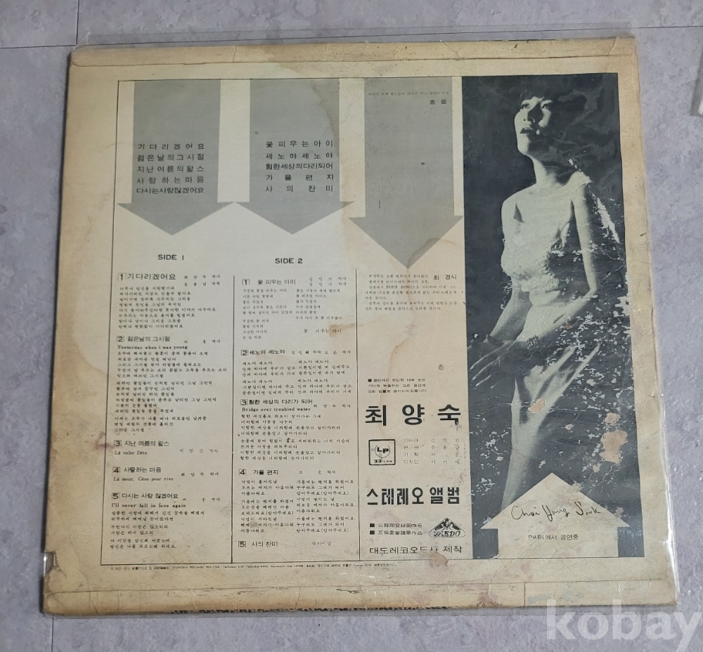 | 자켓상태 | VG : 주름, 접힘, 모서리 찢김 다수 | 음반상태 | VG : 생활 기스 다수, 가벼운 노이즈 존재 | 발매정보 | 초반 | 가사지여부 | 무 |