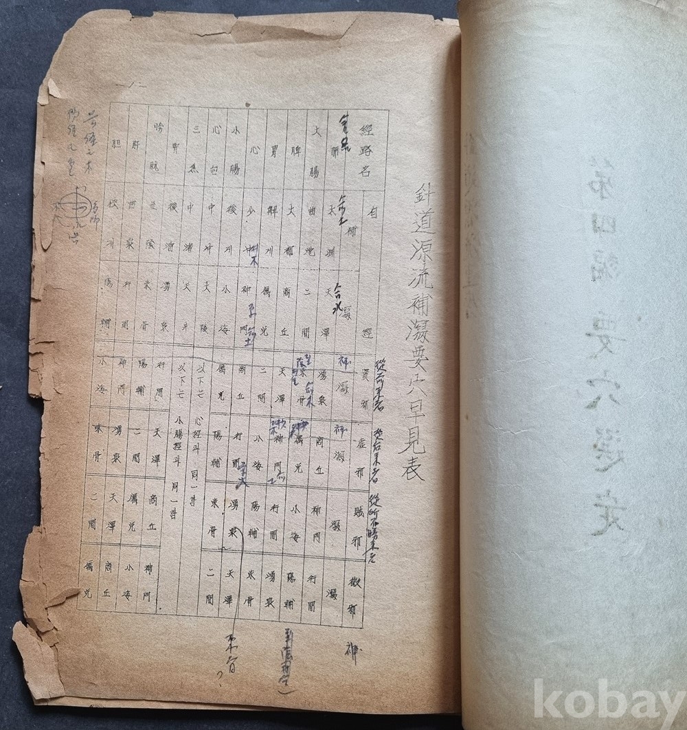 특징: 침구학의 원리와 주요 혈자리를 정리한 전문서로, 본문에 '침도원류 보사요혈 조견표' 등 도표가 포함되어 있어 실용성이 높았던 자료임.