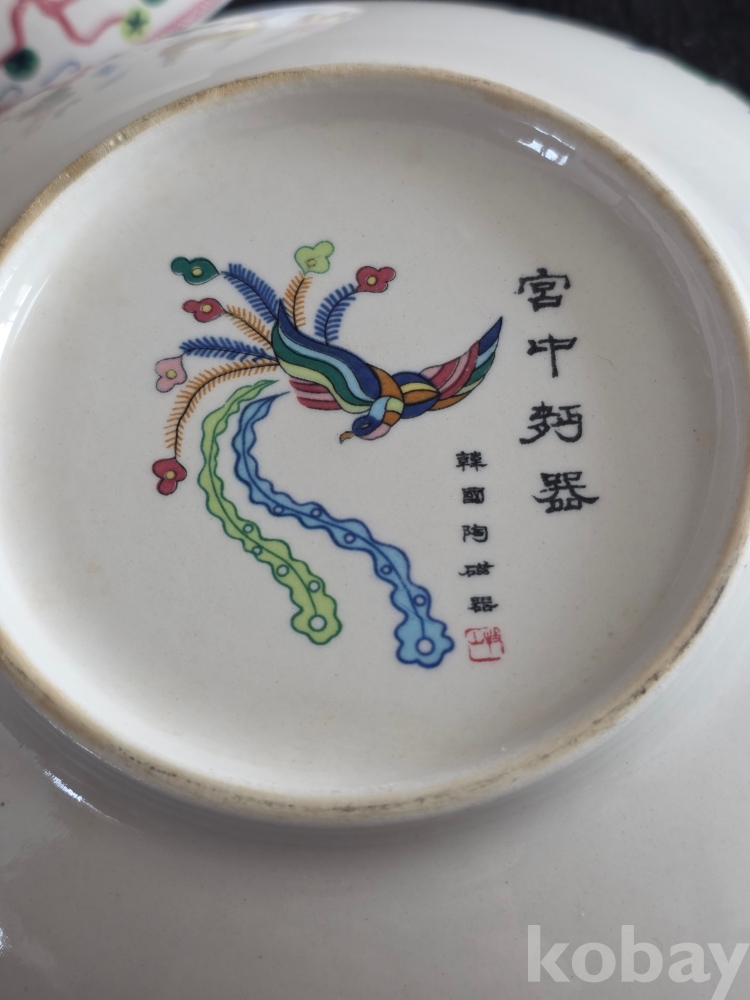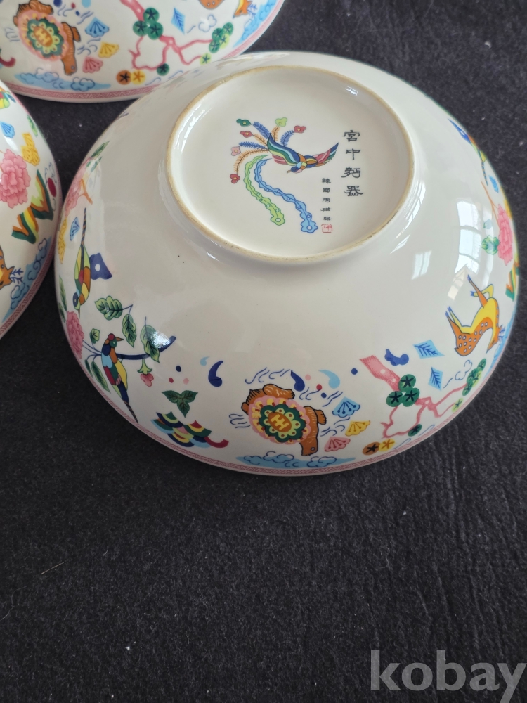 (((근현대사자료/도자기식기))) 오래전 韓國陶磁器 십장생그림 도자기 宮中麵器 3개