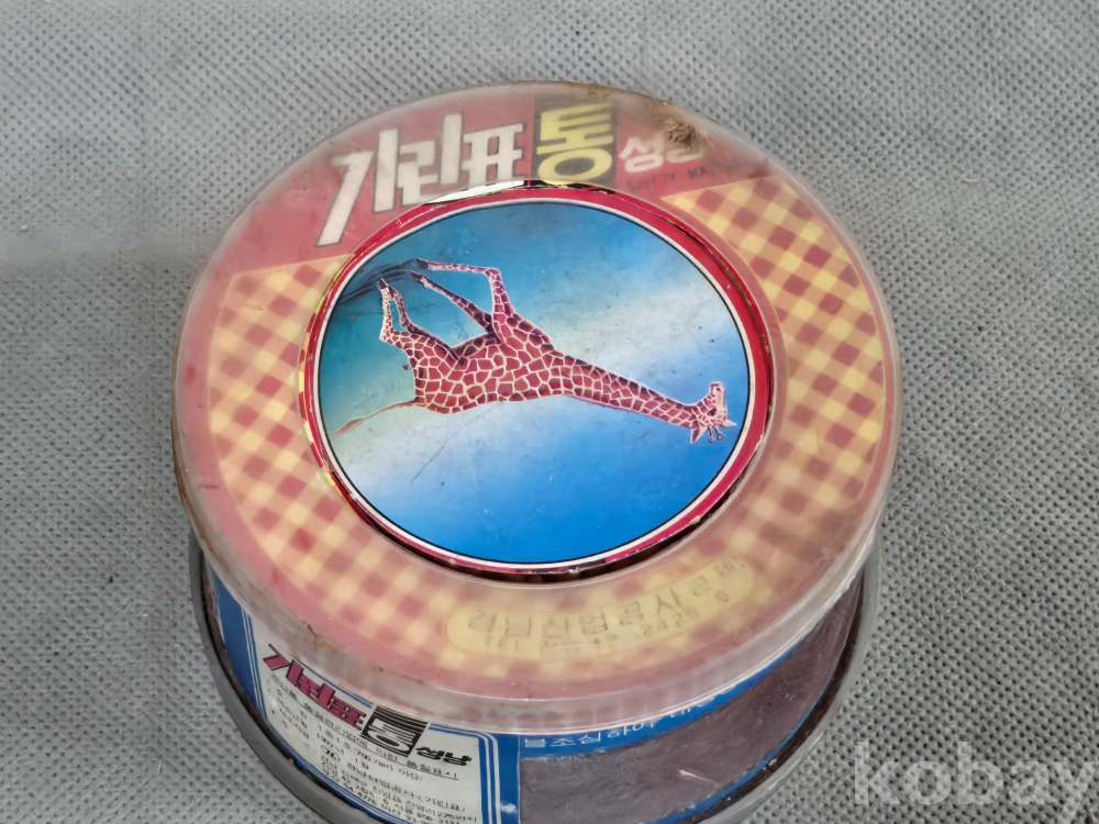 기린표 바닥 양철제질의 원형 미사용 성냥통