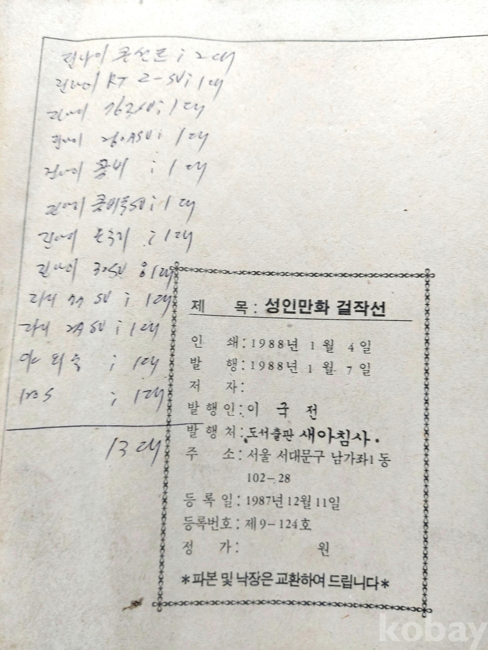 - 성인만화 걸작선 1권.