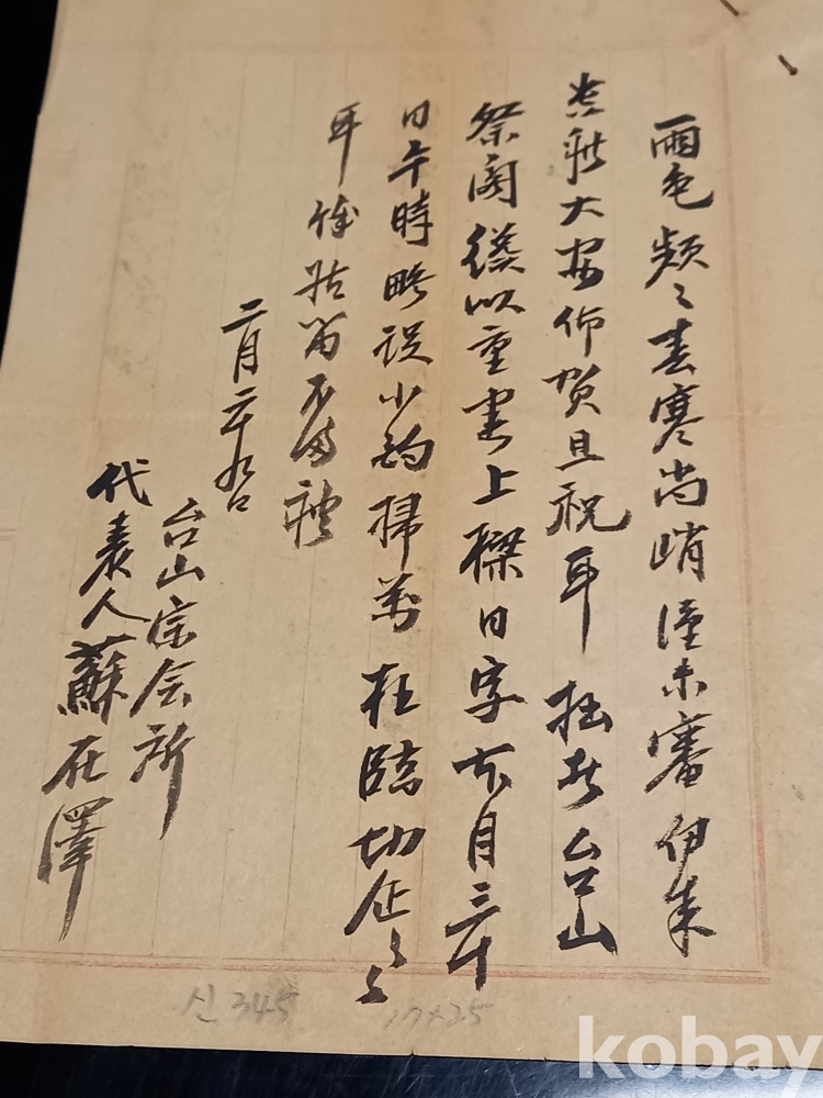신 345) 태산종회소 대표인 소재택 간찰