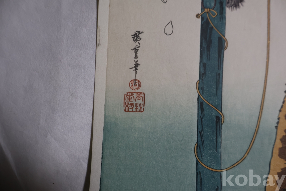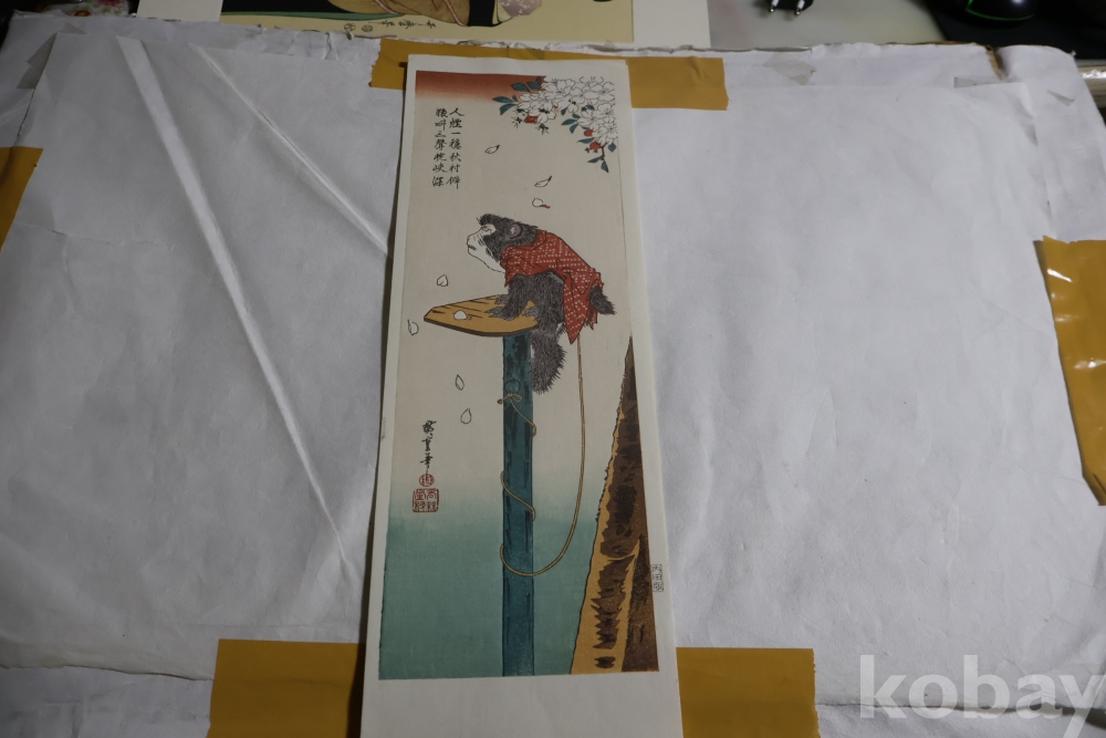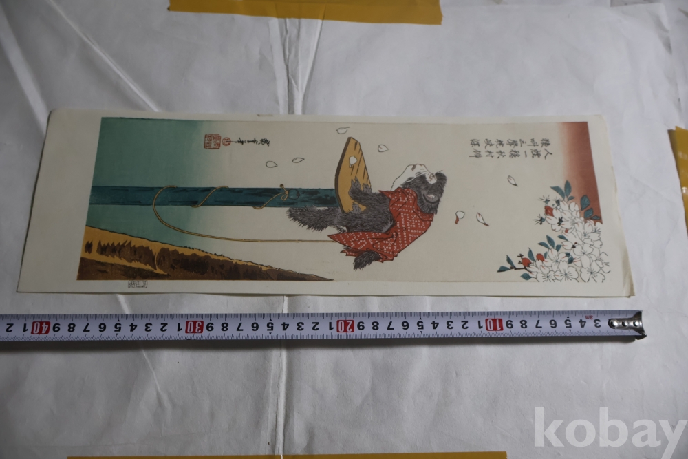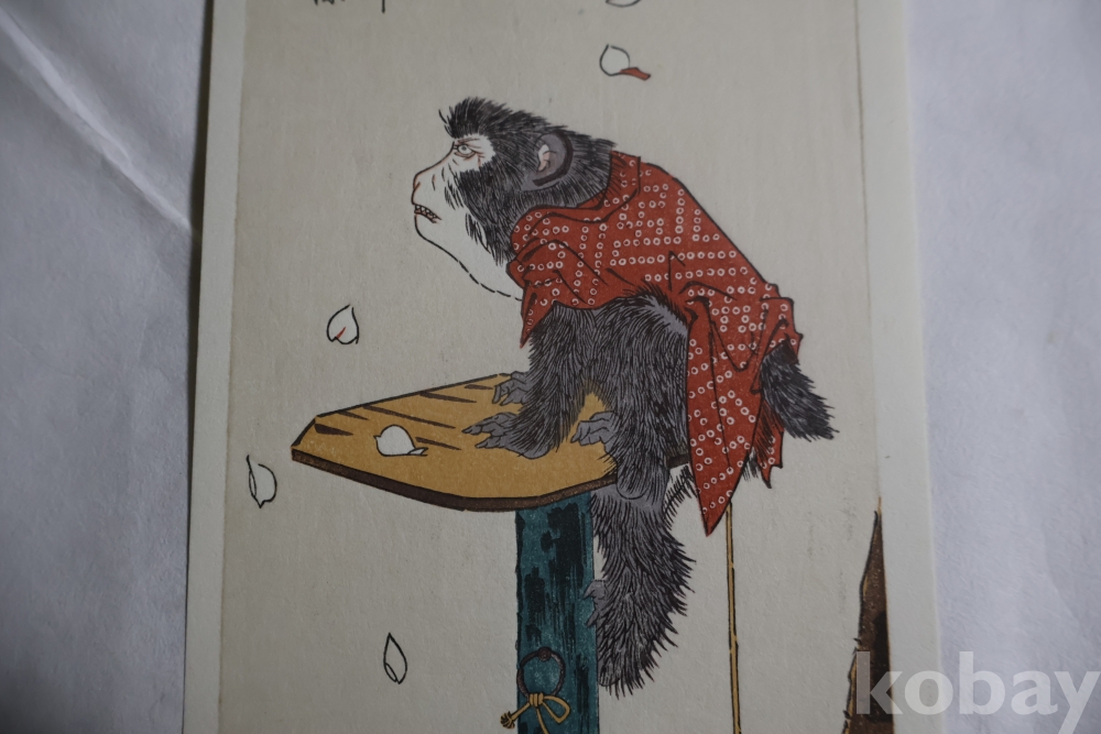 소화기의 복각 목판화 임니다 히로시게 명작 임니다 극히 귀한 원숭이 소제를가진 귀한 형태의 명화 임니다