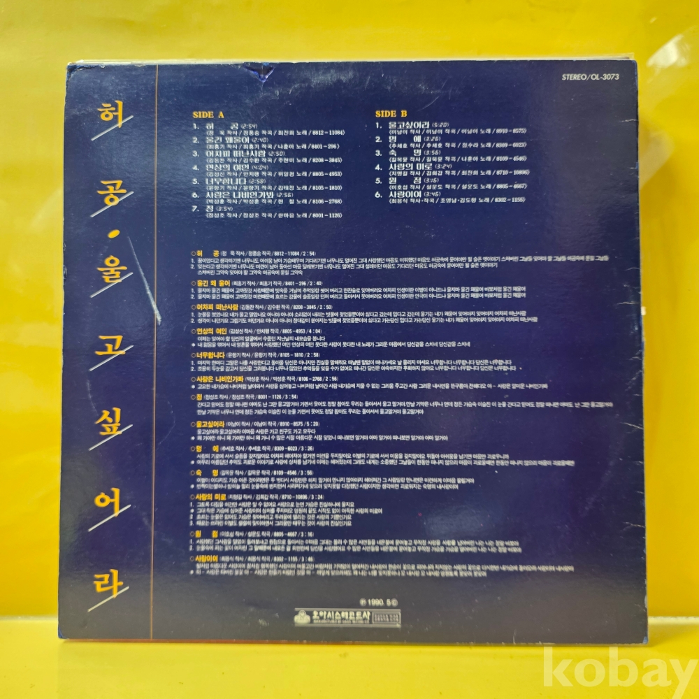 | 자켓상태 | EX : 약간의 마모, 모서리 찢김 존재 | 음반상태 | EX : 재생에 영향 없는 가벼운 기스 존재 | 발매정보 | 초반 | 가사지여부 | 무 |