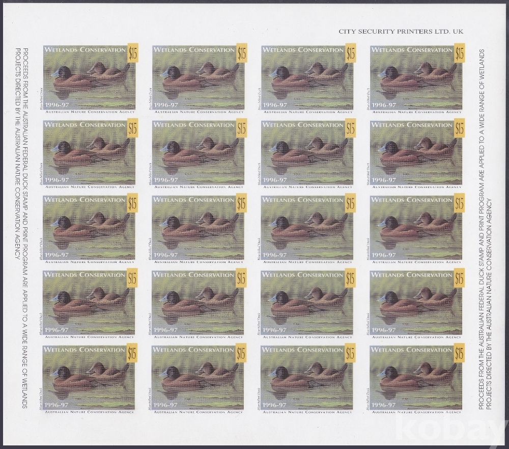 (하늘천) 오스트레일리아 1996년 오리, 습지 보존, 자연, 무공 시트