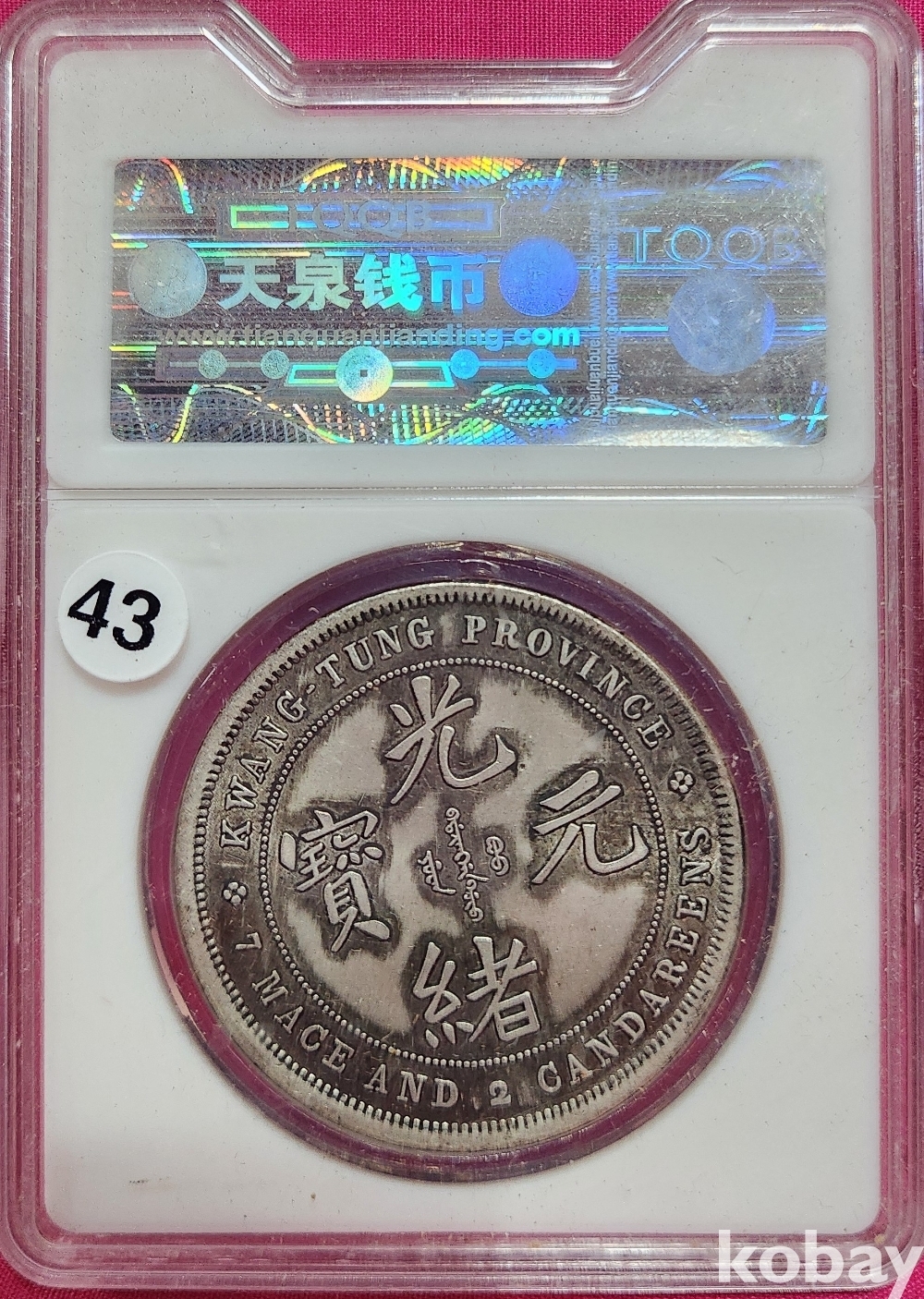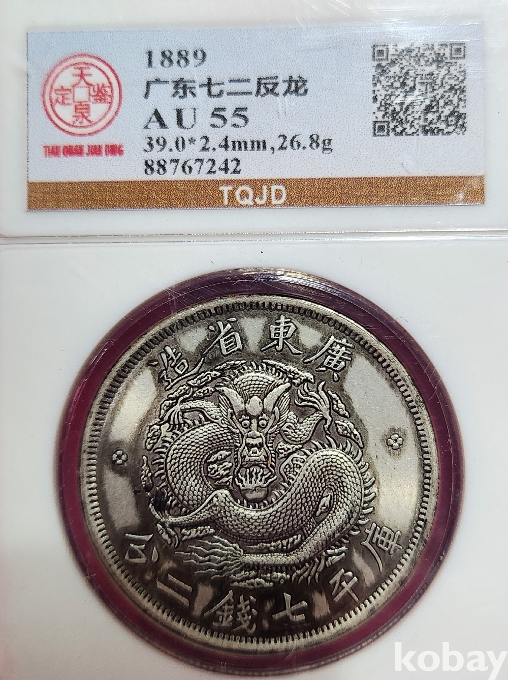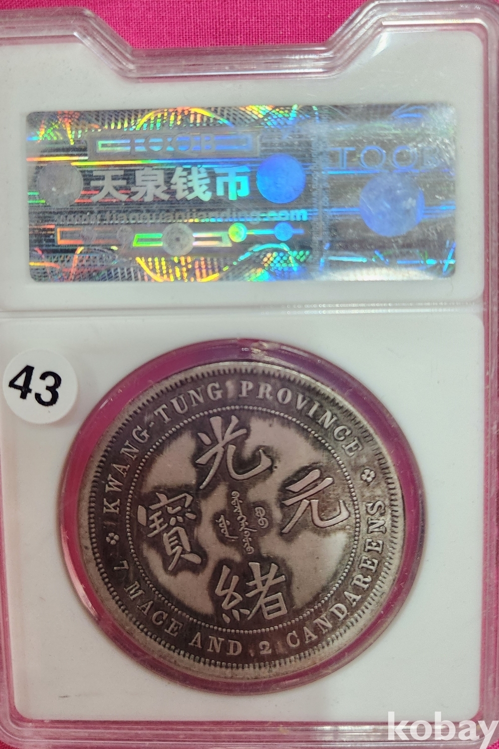 1889년 호남성조(湖南省造) 큐알코드(QR CODE)가 함께하는 은색 광서원보 (光緖元寶) 화패로 밀봉된 상태입니다,