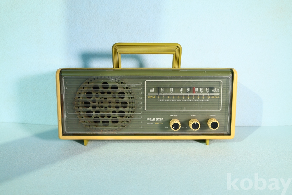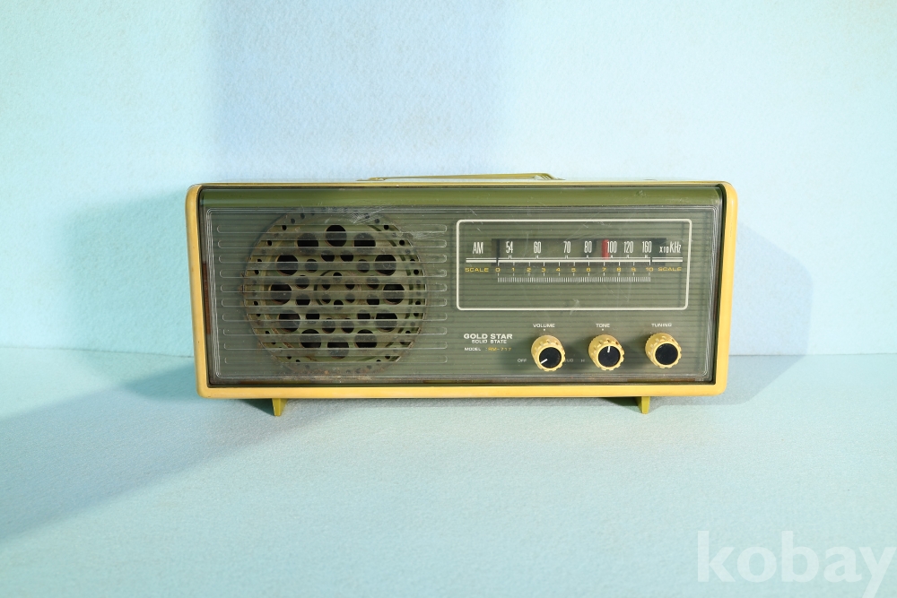 당시 가전 디자인의 파격을 보여주었던 금성사의 스페이스 에이지(Space Age) 감성이 물씬 풍기는 AM 라디오 RM-717 모델입니다.