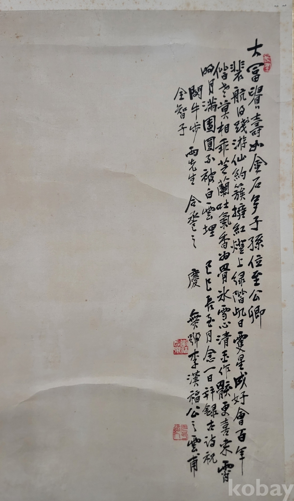 작품은 이한복 선생이 1929년 음력 5월 21일에 민 우보·김 지자 두 분의 선생과 술잔을 함께 하는 자리를 축하하며 그린 것이다.