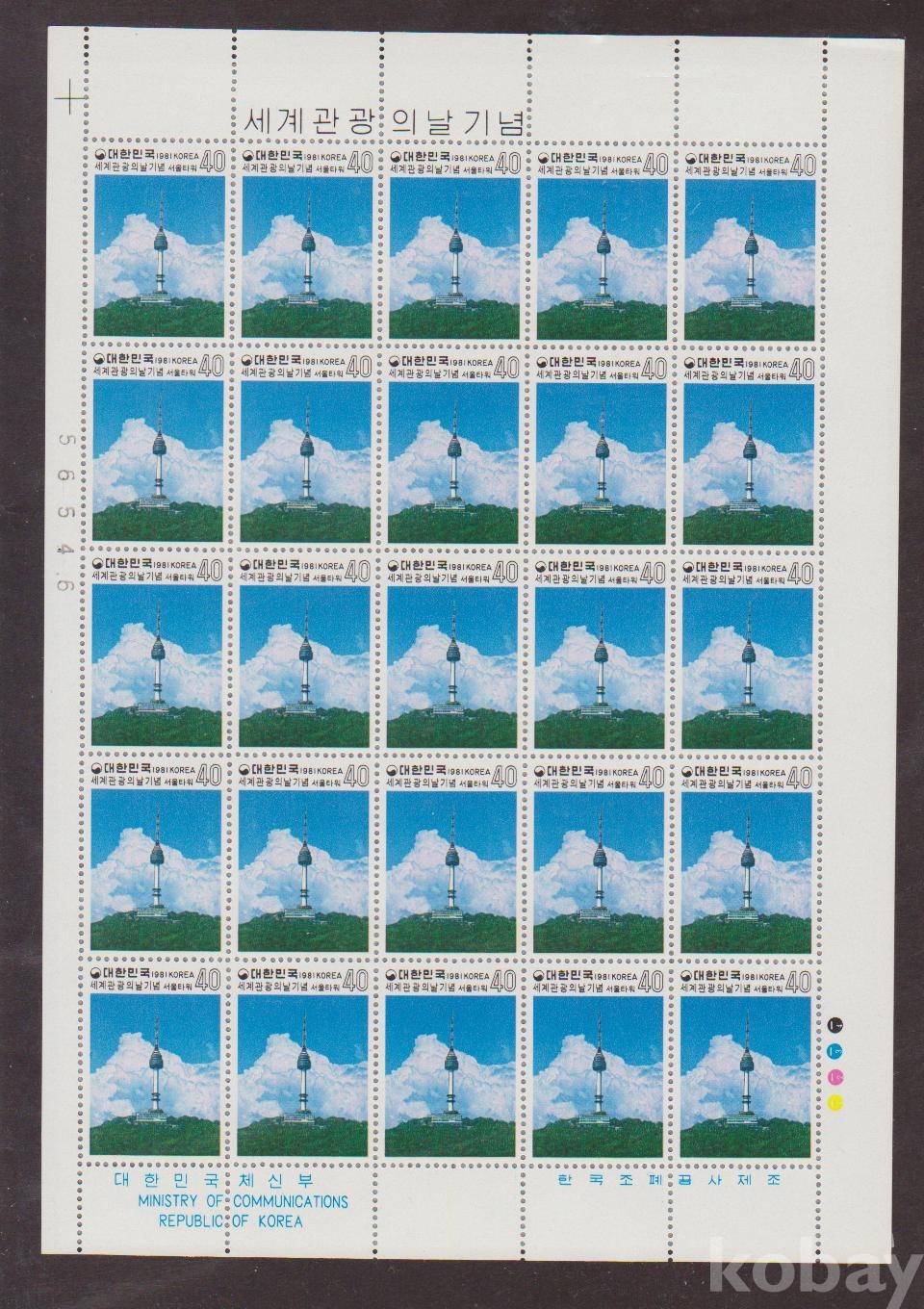 (한국전지) 1981.9.28 세계관광의 날 2완 sheet of 25 MNH