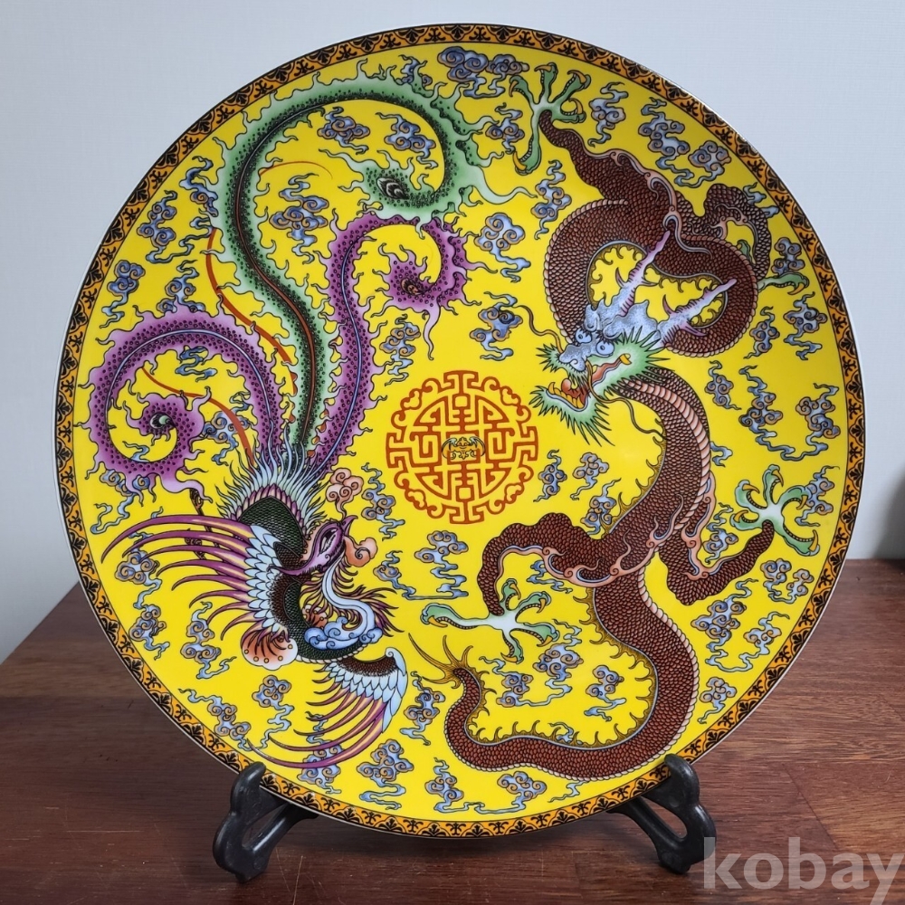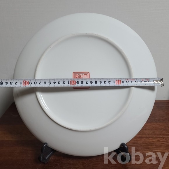 그림이 화려하게 전사된 도자기 접시입니다. 미사용 작품으로 좌대와 함께 제공되며 사이즈와 무게 모두 장식용으로 두고 보시기에 손색없는 작품입니다