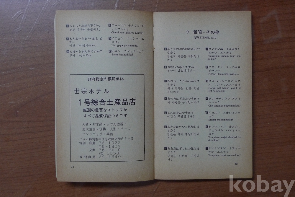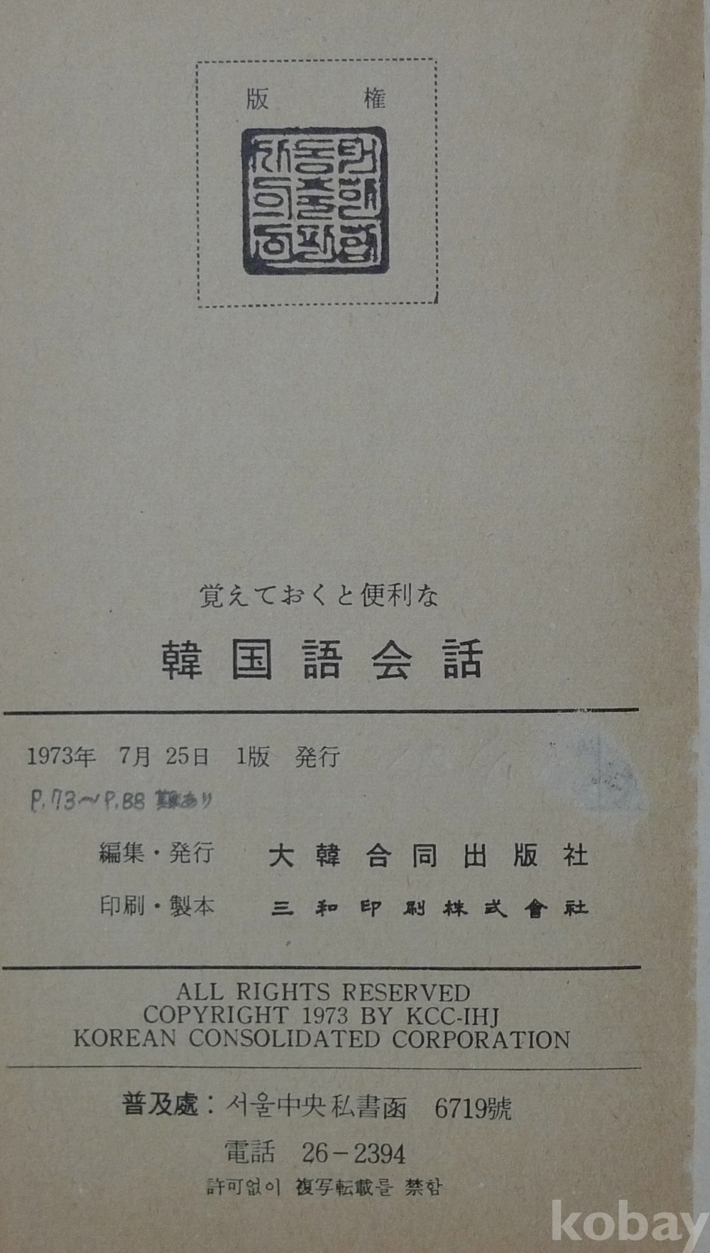 1973년 한국어 회화 책자 - 표지모델 영화배우 홍세미 -