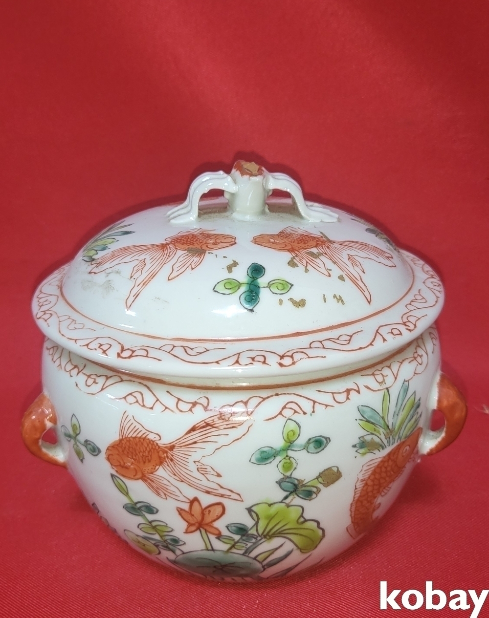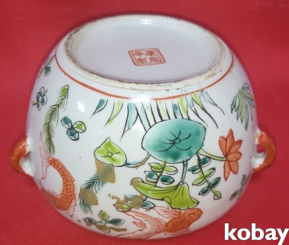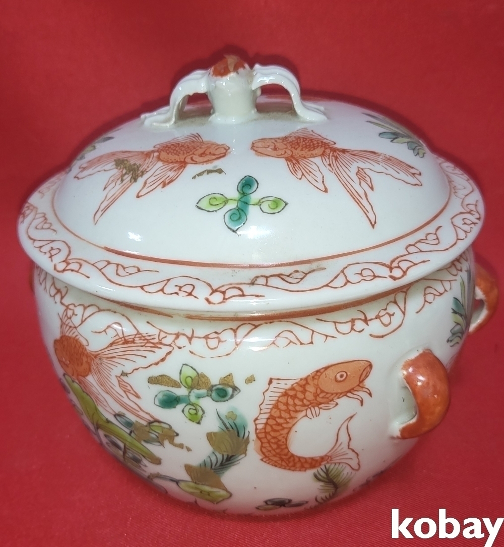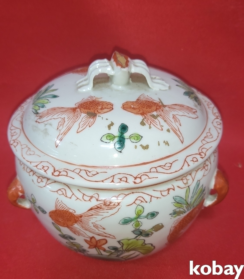 강희연제 홍채 어문(魚紋) 사이(四耳)유개 합입니다,