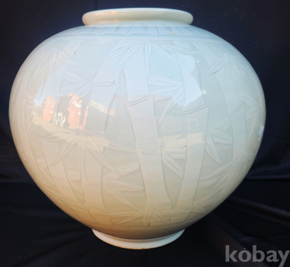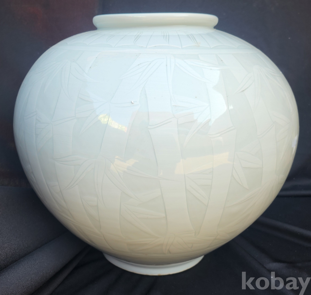 <민속도예연구원> 수곡(秀谷) 조홍민 도예가 作品 < 백자음각대나무문 대호 白磁陰刻竹文 大壺 >