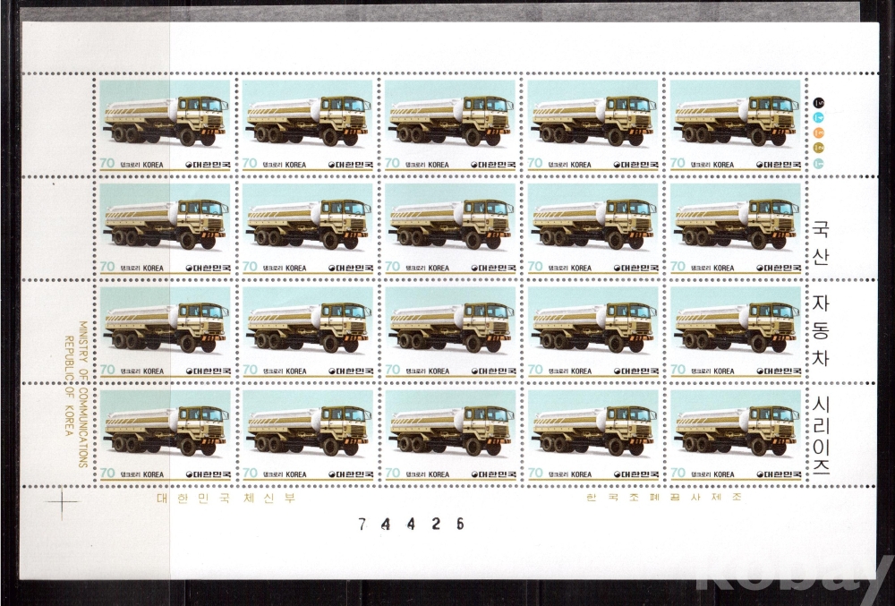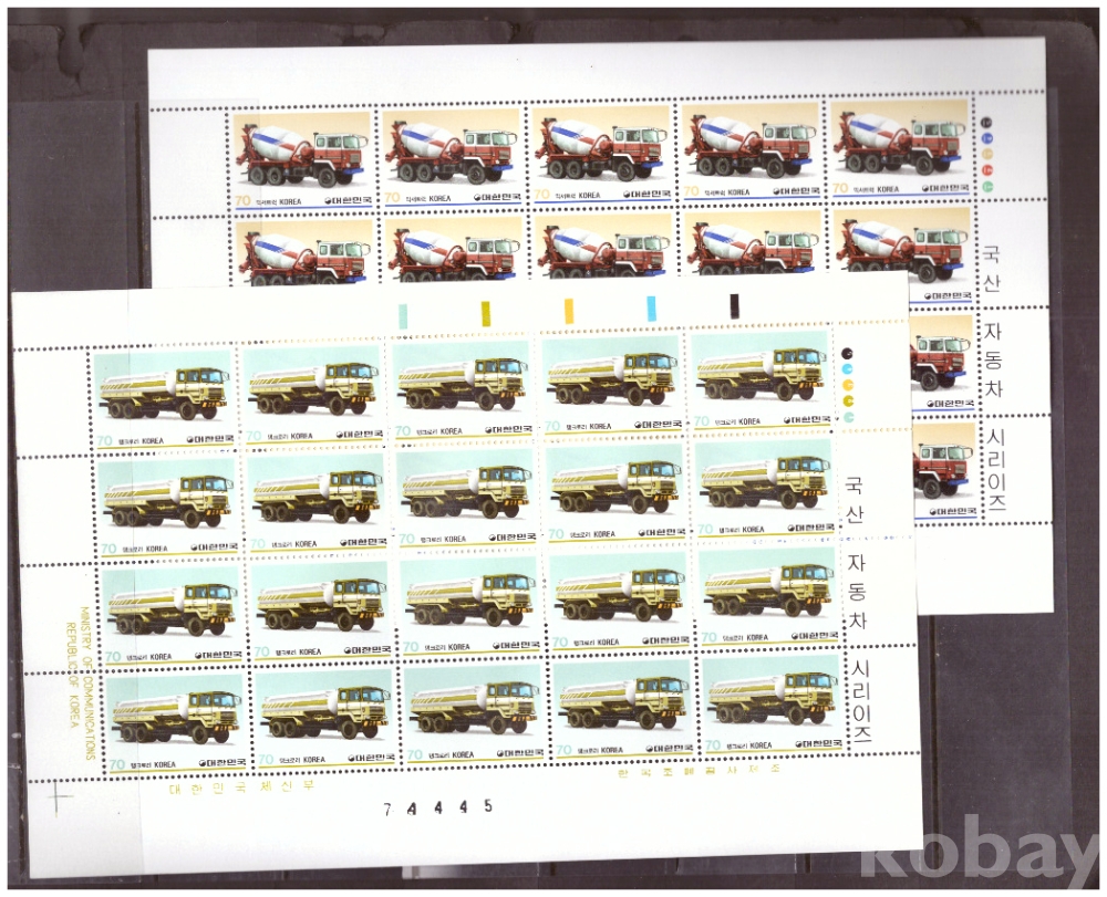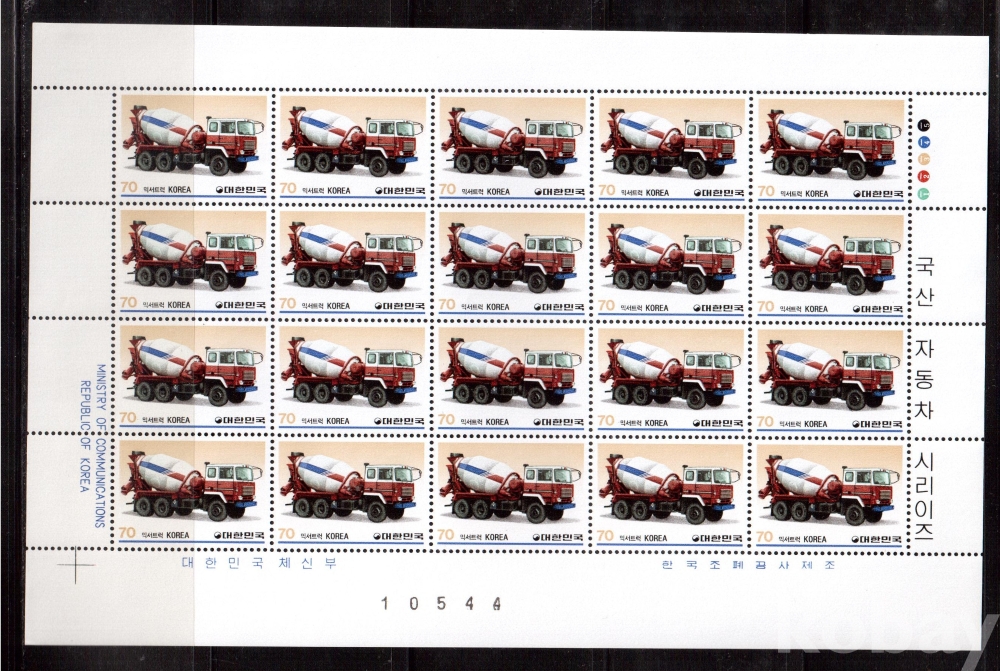 (한국전지) 1983.8.25 국산자동차 시리즈(제5집) 2완 sheet of 20 MNH