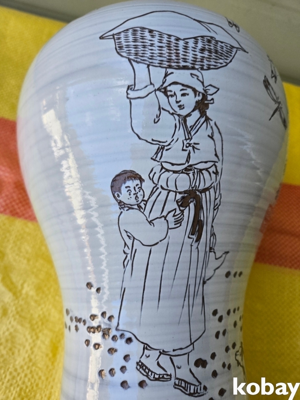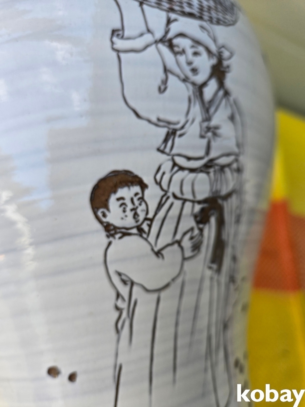 광주리를 이고 가는 엄마의 치맛자락을 붙잡고 떼쓰는 아이의 익살스런 표정...