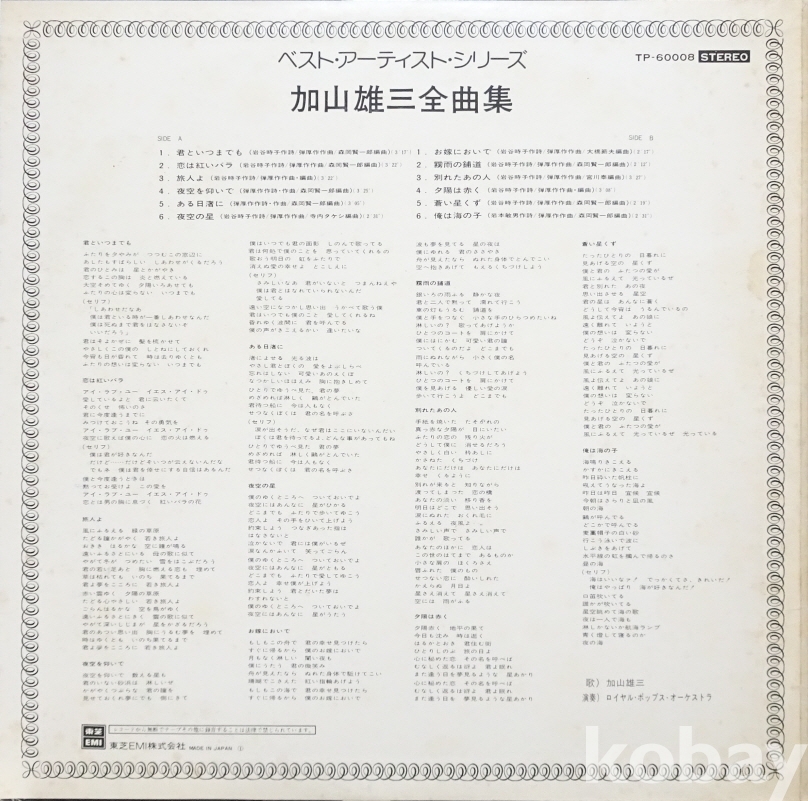 | 자켓상태 | VG : 주름, 접힘, 모서리 찢김 다수 | 음반상태 | EX : 재생에 영향 없는 가벼운 기스 존재 | 발매정보 | 알수없음 | 가사지여부 | 무 |