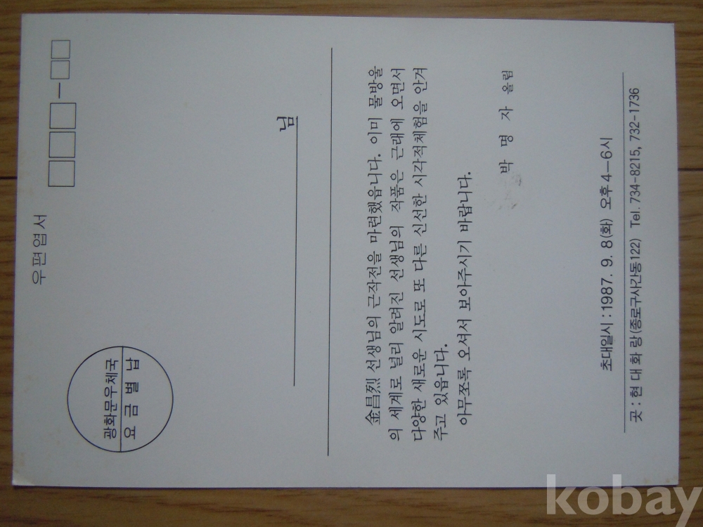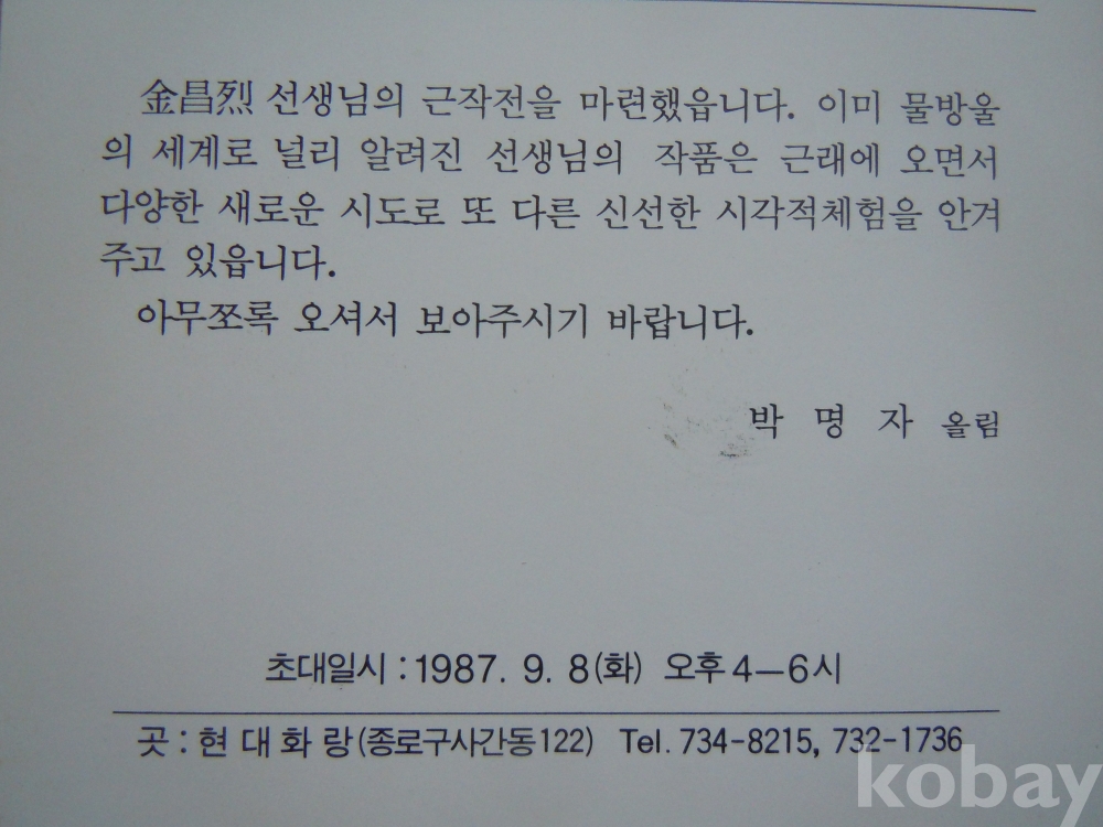 김창열(물방울 작품 대가) 1987년 현대화랑 개인전 멋진 작품엽서 /
