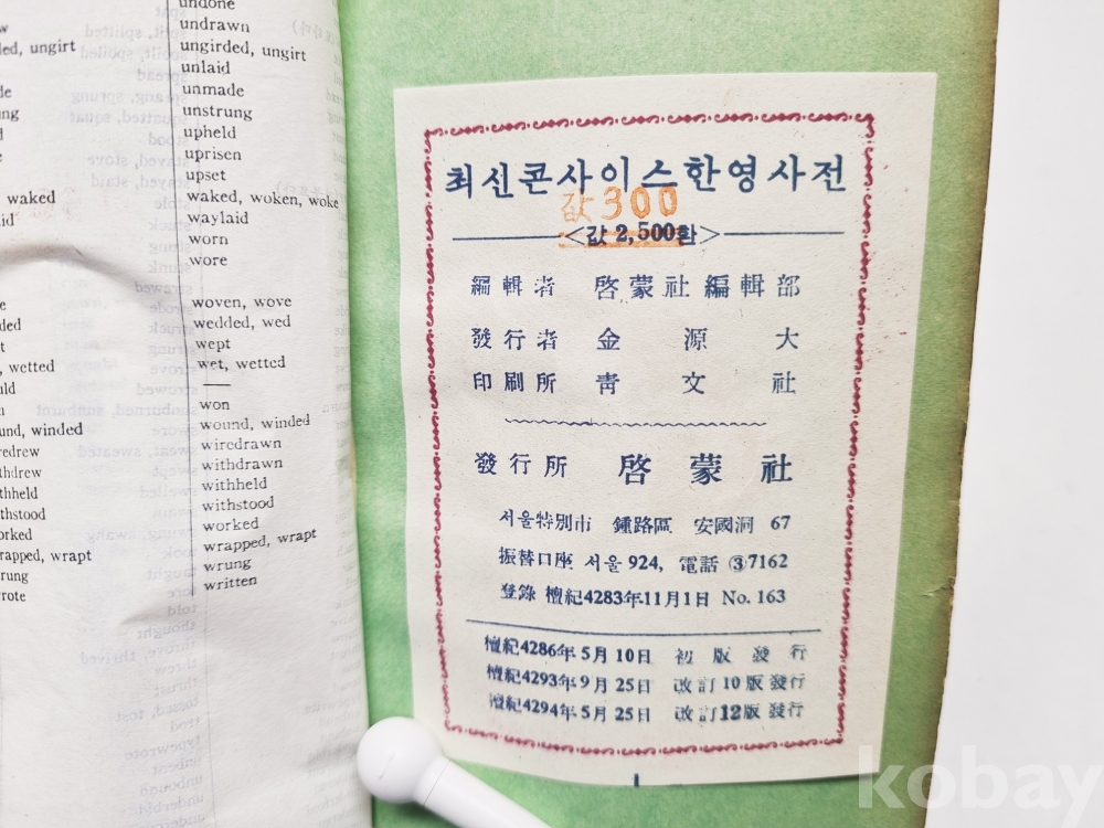 개정 12판 발행: 단기 4294년 5월 25일 → 서기 1961년