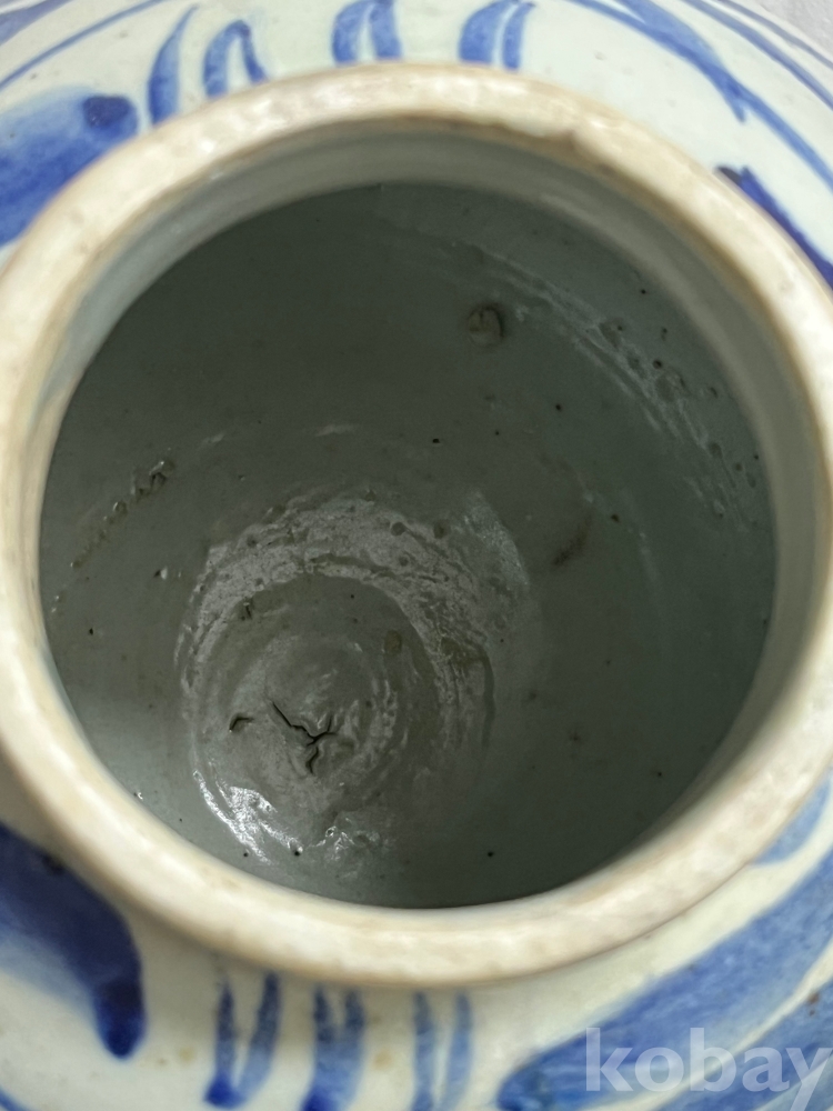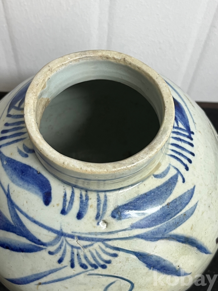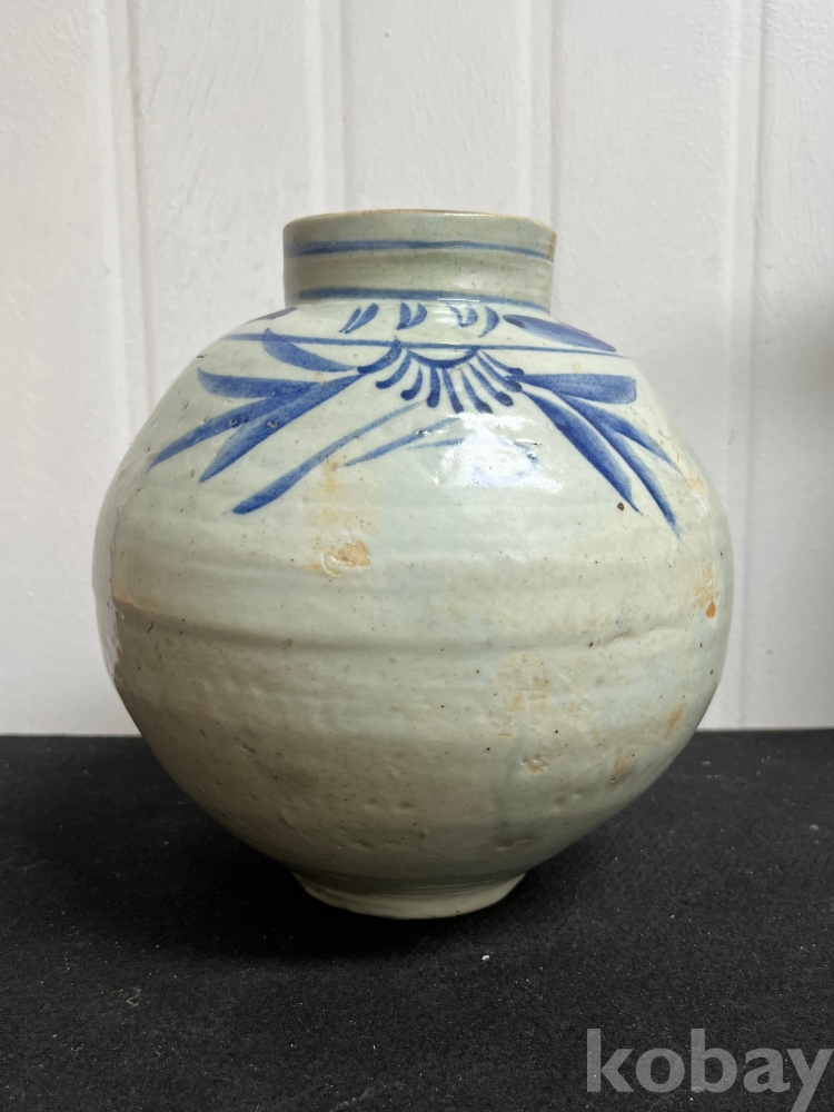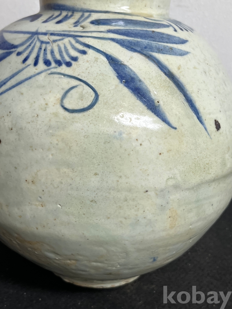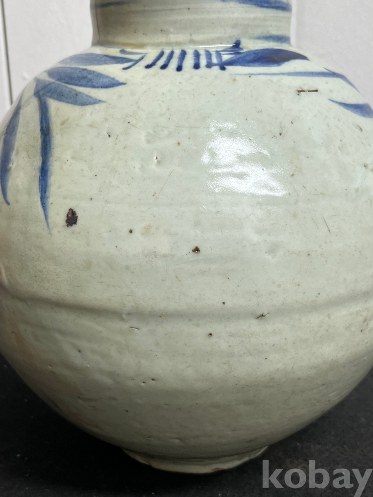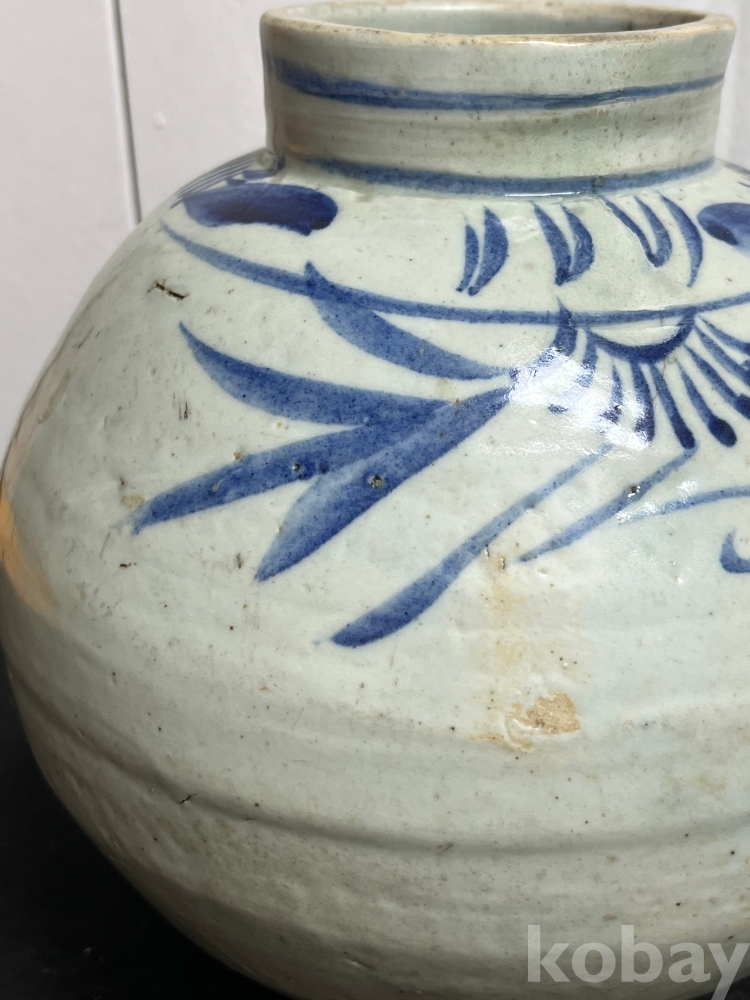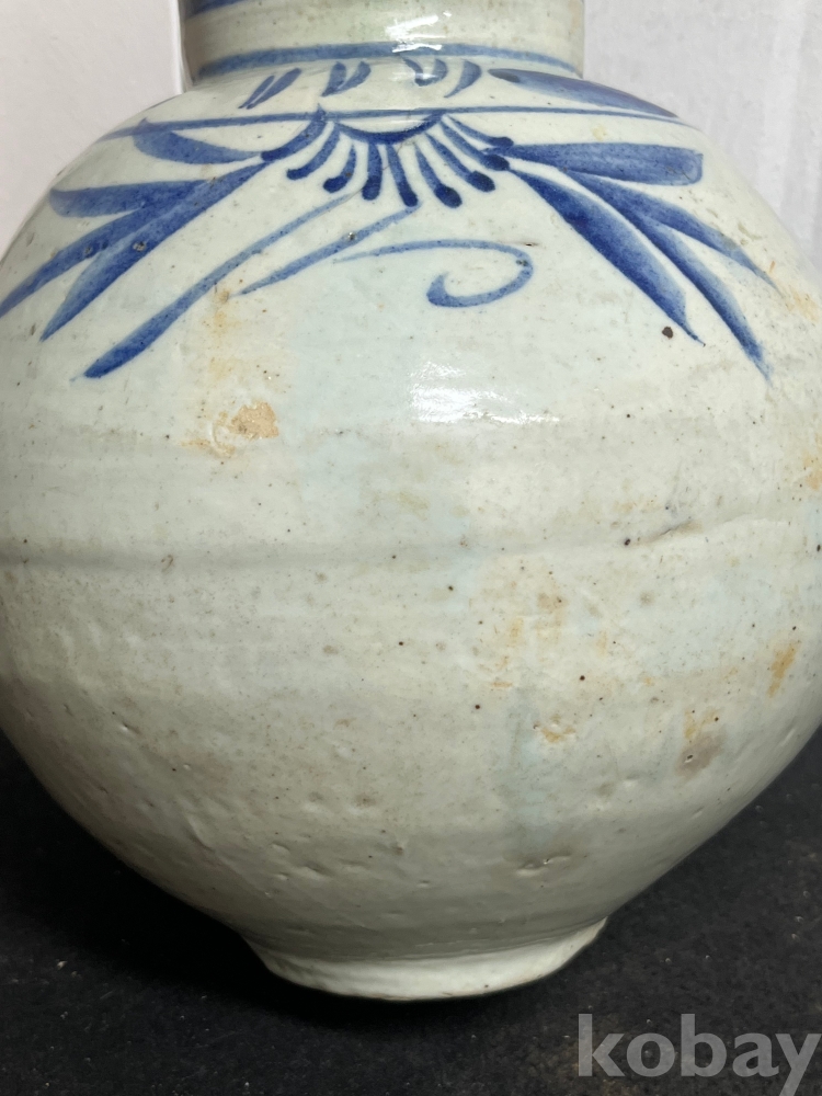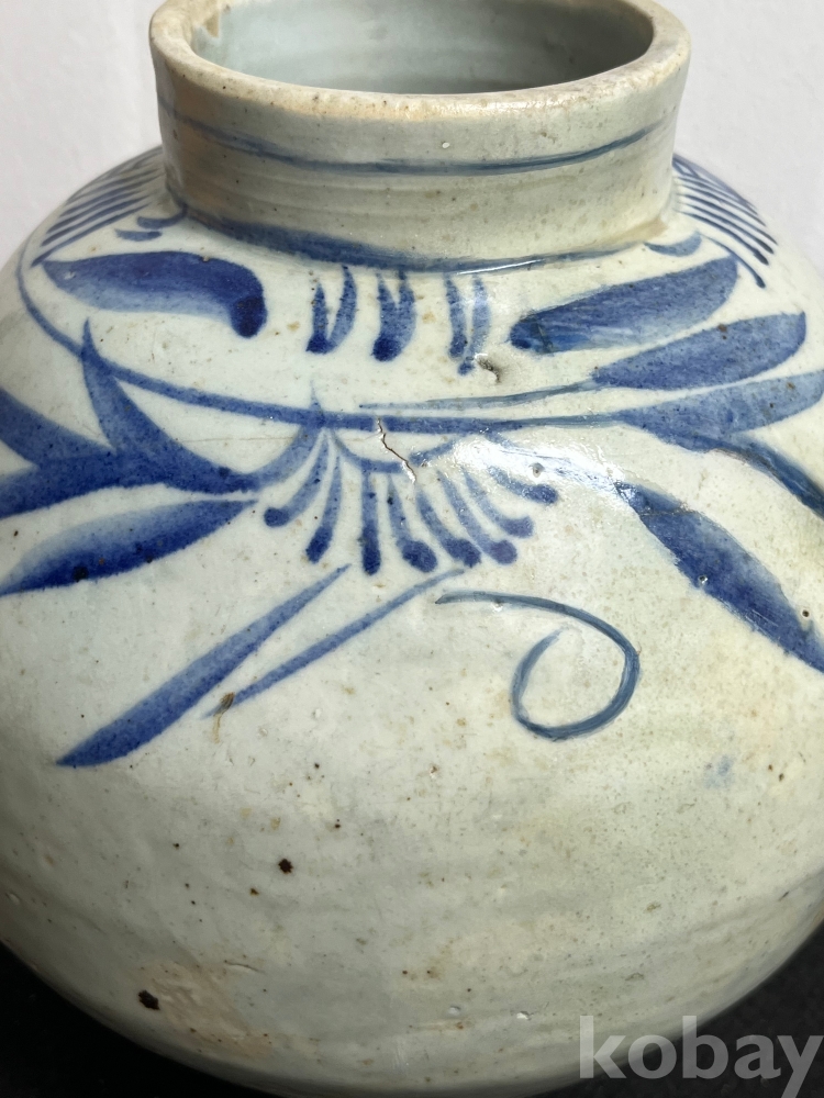 상부에 배치된 청화문양은 절제된 필치로 표현되어 담백한 운치를 더합니다.