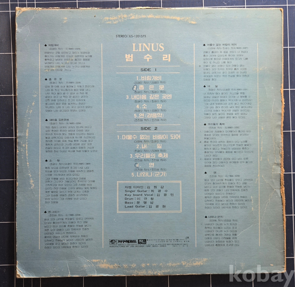 | 자켓상태 | VG : 주름, 접힘, 모서리 찢김 다수 | 음반상태 | NM : 개봉했으나 미사용급, 스크래치 없음 | 발매정보 | 초반 | 가사지여부 | 무 |