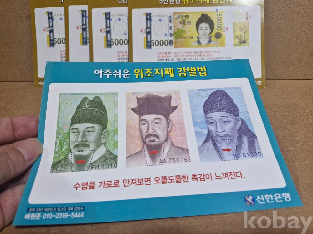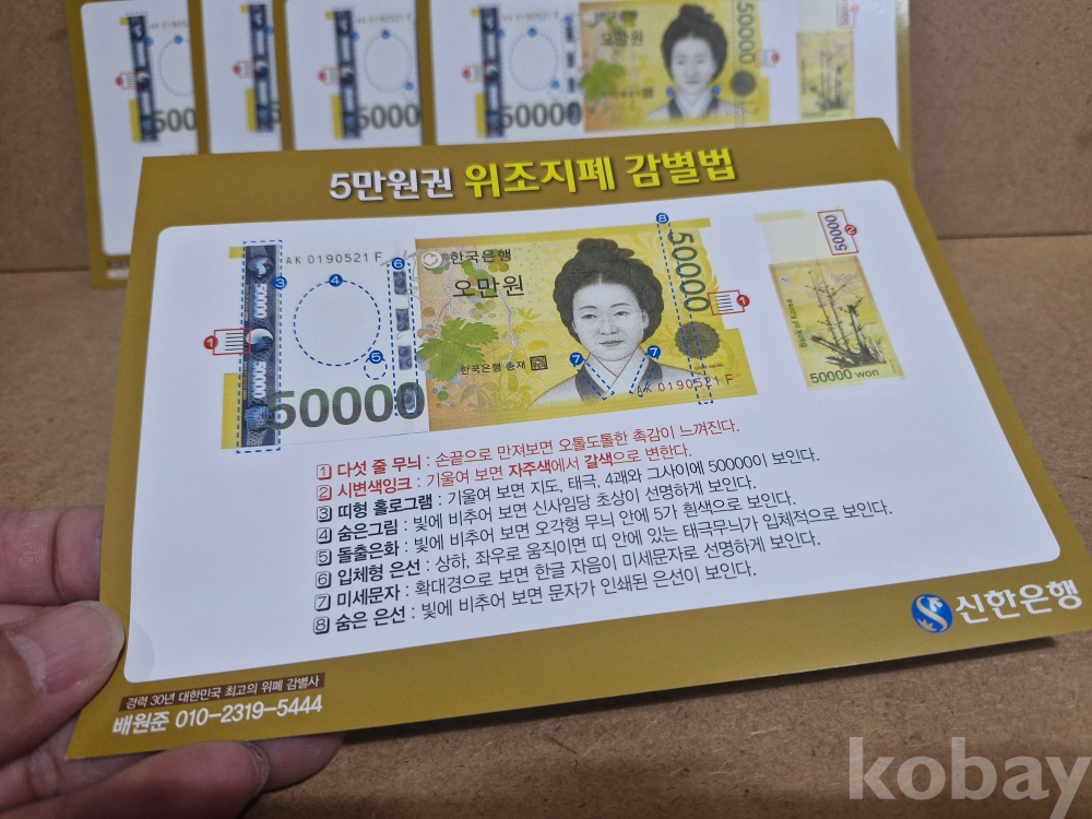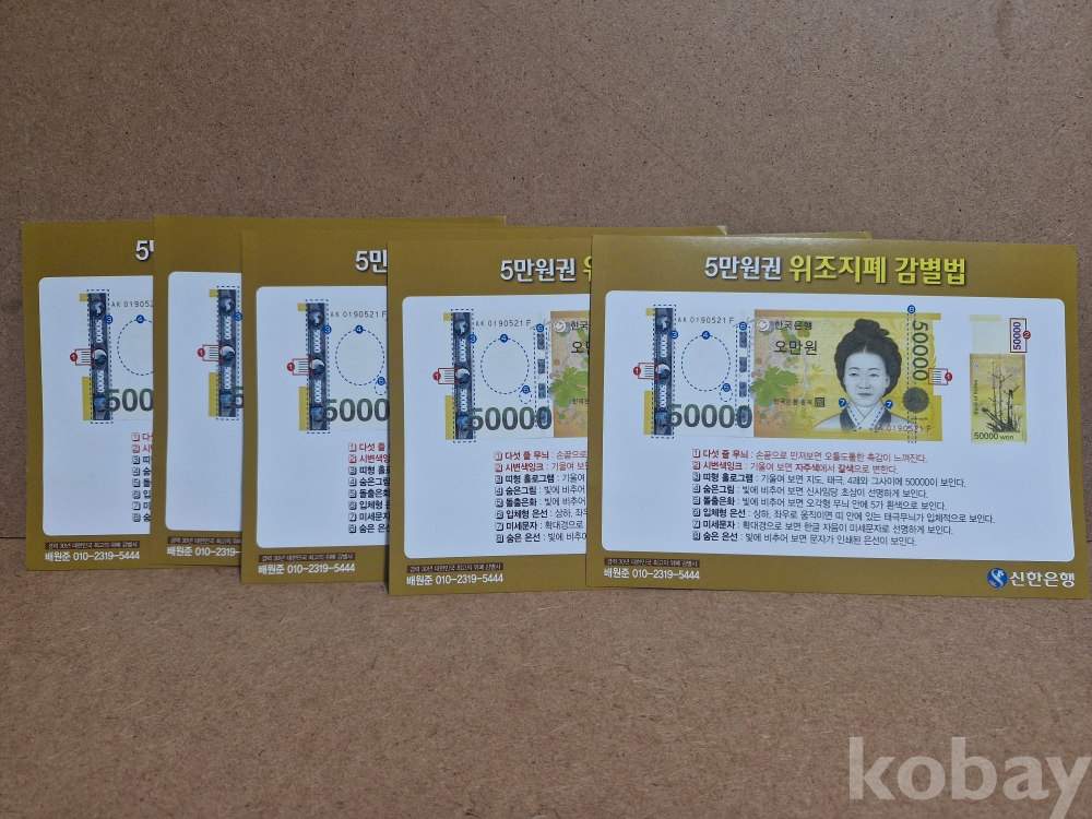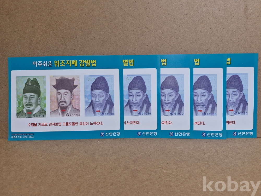 위조지폐 감별법 안내장 5장 조폐공사 동전 주화 화폐 근현대사