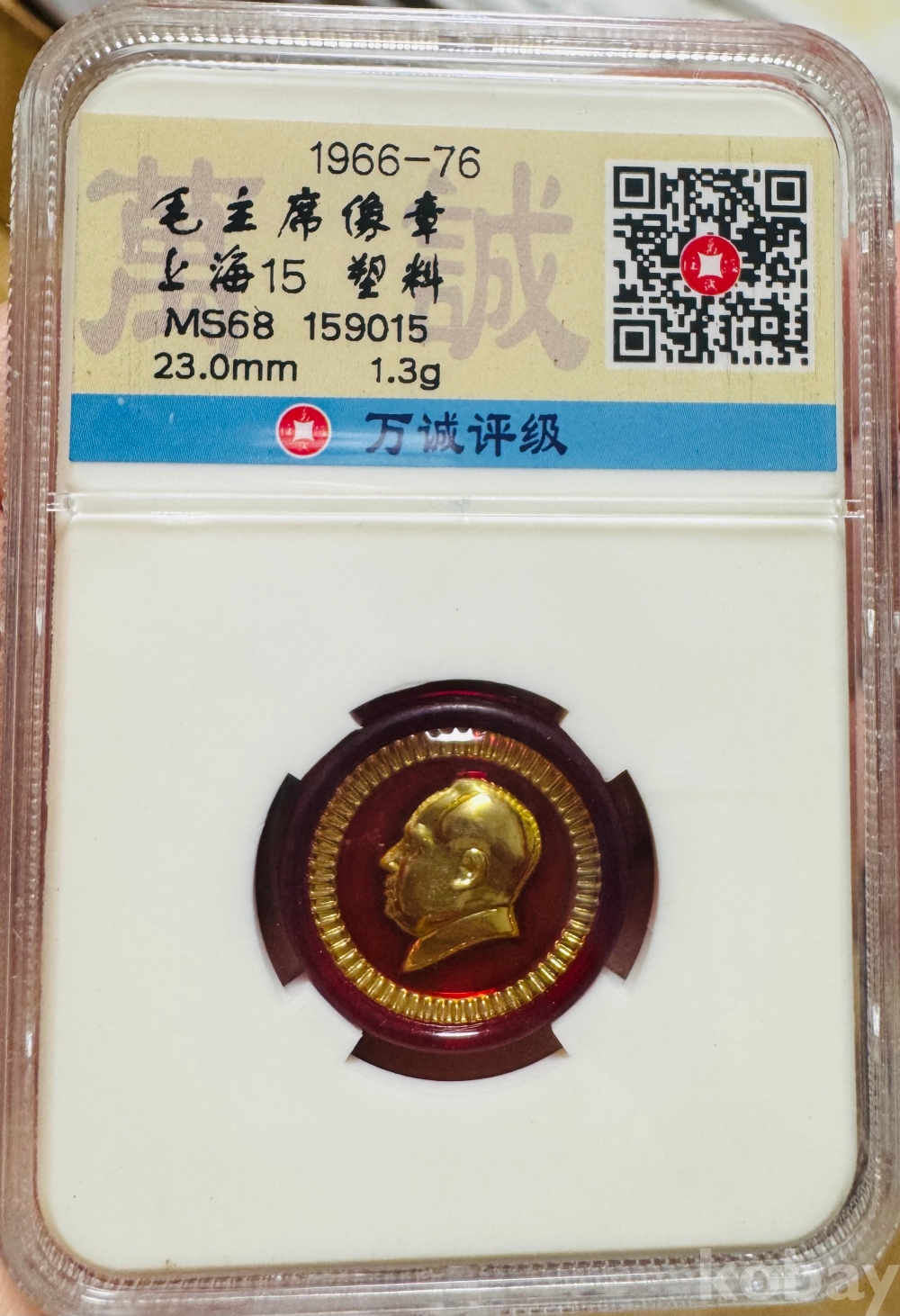 1966~1976년의 **마오 주석 초상 배지(毛主席像章)**로, 문화대혁명 시기의 대표적 정치 선전 기념물이다. 당시 중국에서는 마오쩌둥 개인숭배가 극도로 강화되면서 이런 배지가 학교, 공장, 기관, 군대, 각종 집회 현장에서 대량 제작·배포되었고, 착용 자체가 충성의 표시처럼 여겨졌다. 사진의 예처럼 상하이 계열 제작품은 산업도시의 대량생산 체계를 반영하며, 금속이 아니라 플라스틱이나 경량 재질로 만들어진 경우도 많아 선전물의 대중적 보급 성격이 강하다. 따라서 이것은 정식 화폐라기보다, 문화대혁명기의 정치 분위기와 마오 숭배 문화를 직접 보여주는 시대 유물로 보는 것이 더 정확하다.