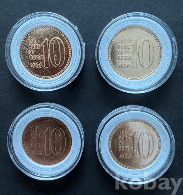 1966년 귀한 미사용 십원 주화 4개 입니다.