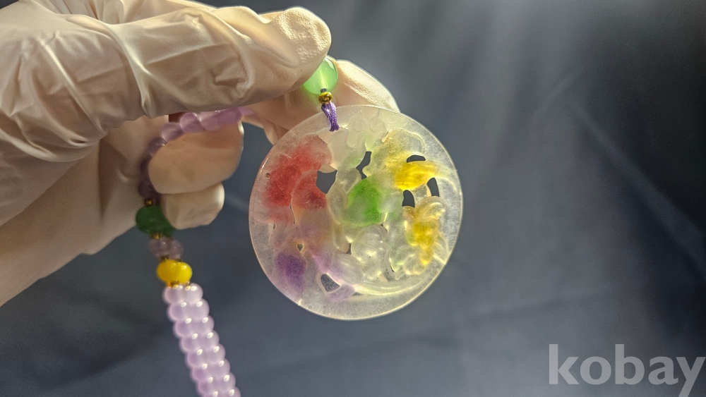 옥에 색감을 물들인 것인지 특이하게 보여집니다.