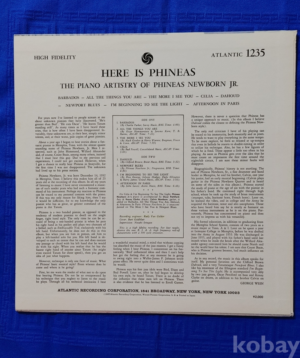 Phineas newborn Jr.앨범입니다 / 트랙은 별도로 제공합니다 / Nm+