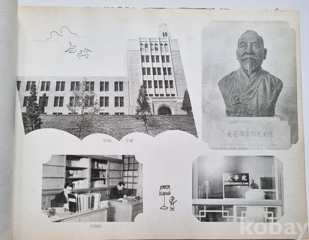 당시 총장 유진오(兪鎭午) 박사 (헌법 기초자이자 소설가 '현진건'과 비견되는 문인)의 인물 사진 수록.