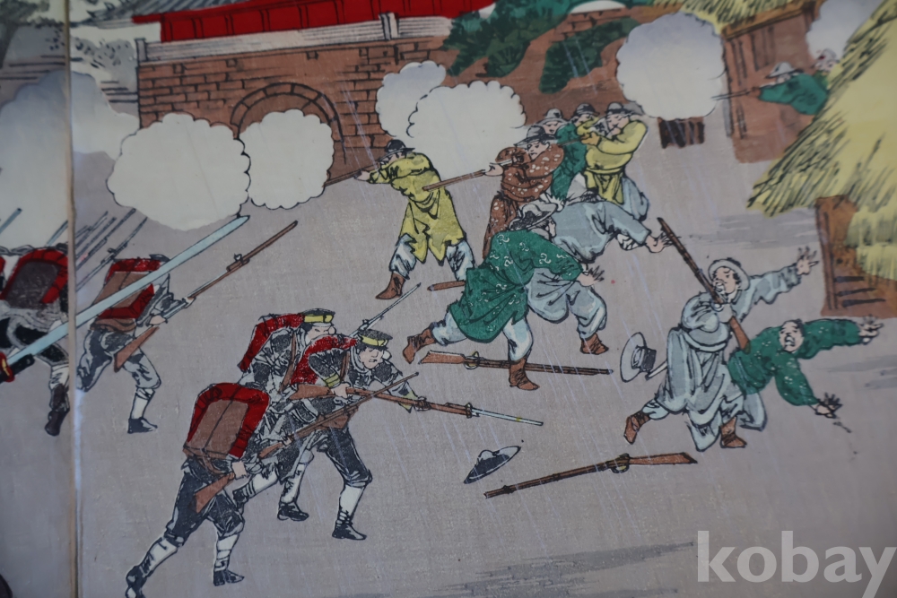 역사적 사실을 알린 일본 목판화 원본 임니다 당시대원군과 일본 군대를 가진 귀한 목판화 원본 임니다 명치27년 1894