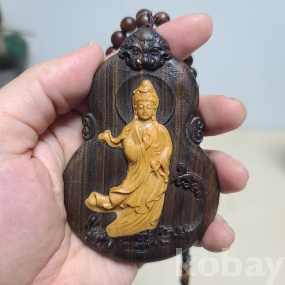은은한 나무냄새가 나는 침향나무를 정교히게 조각한 불교 패입니다 미사용으로 상태 좋습니다