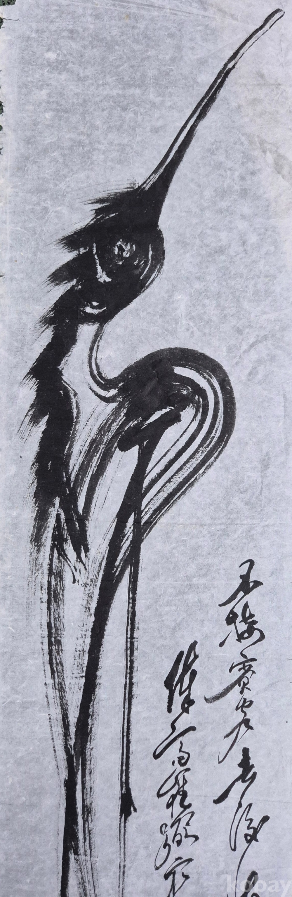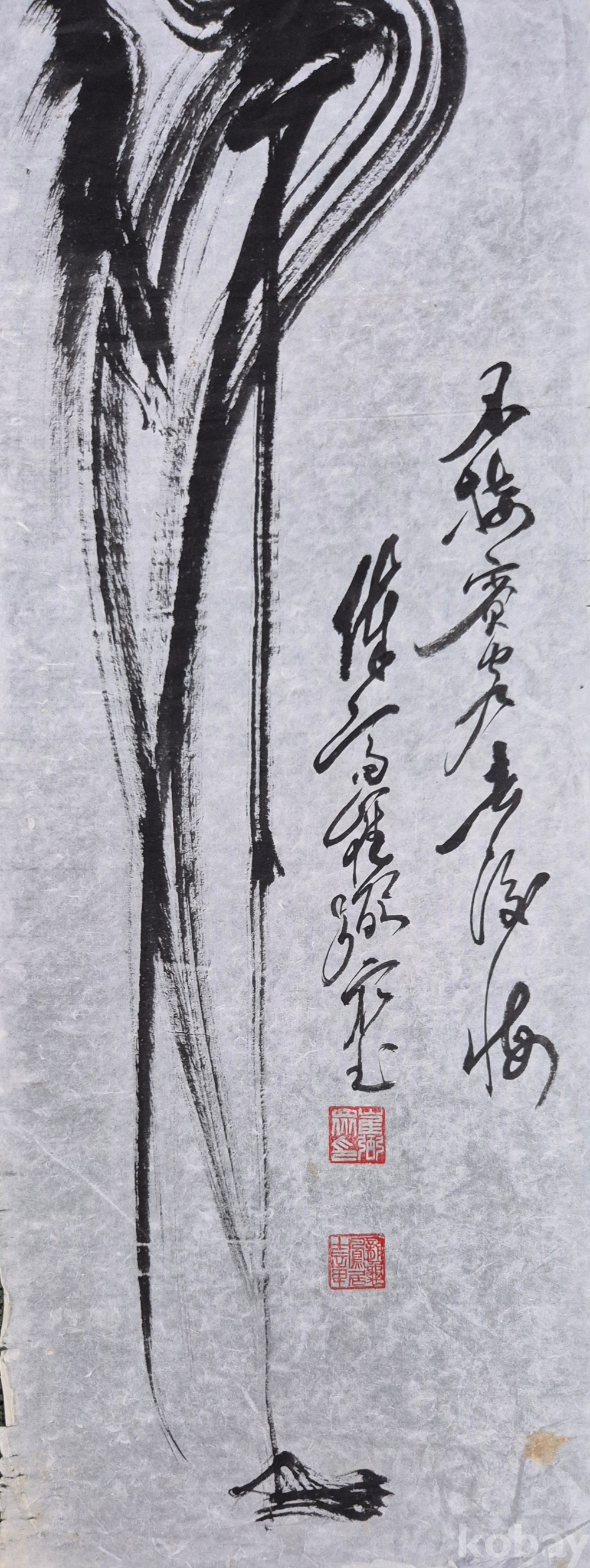 수려한 필력의 추상 학 그림으로 상당한 수준의 작가분 작품 추정되오니 작품 이미지상 수결 및 낙관'등 두루 잘