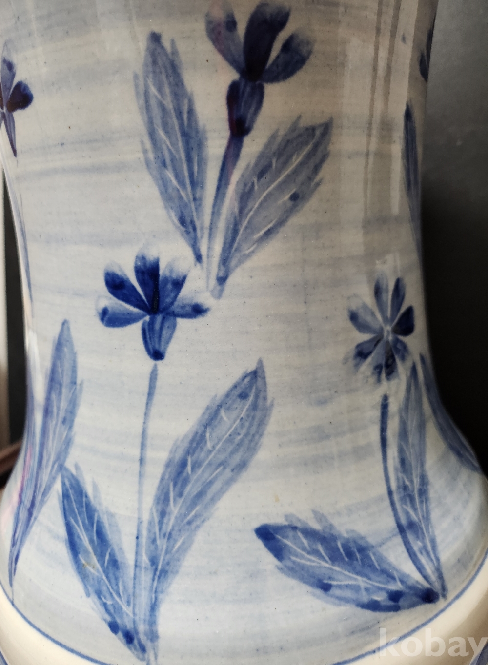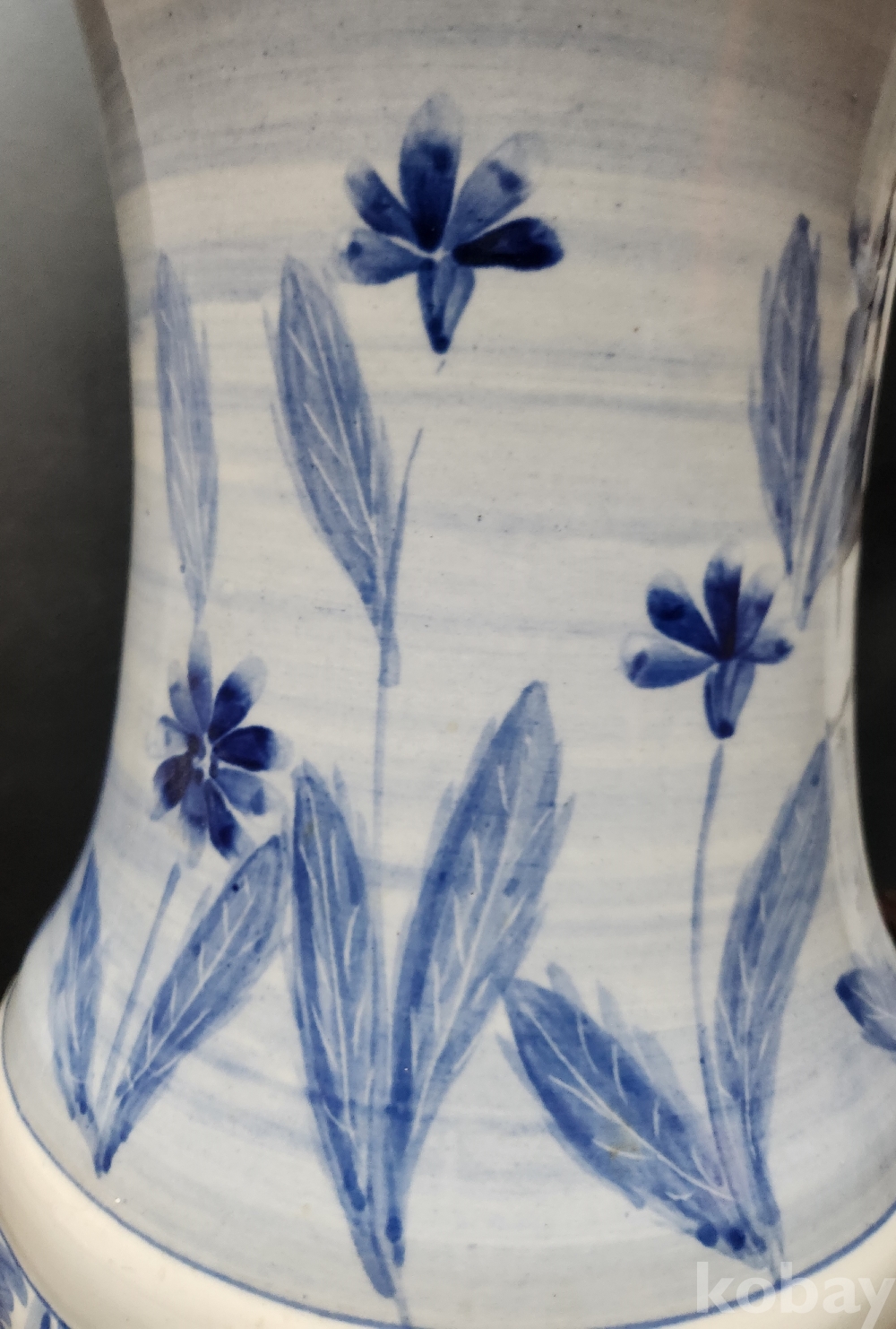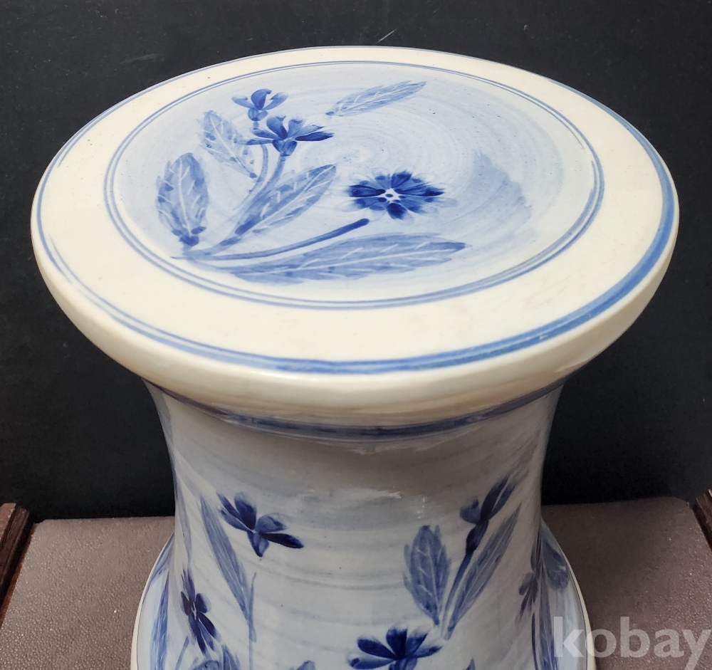 백자청화화훼문도자기화대 白磁靑華花卉紋茶陶瓷器花臺
