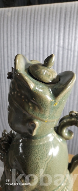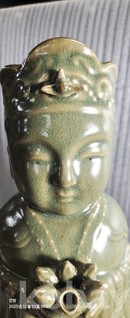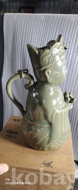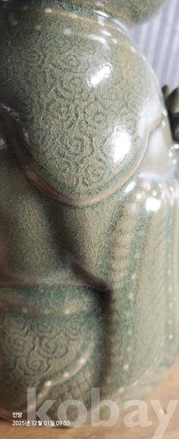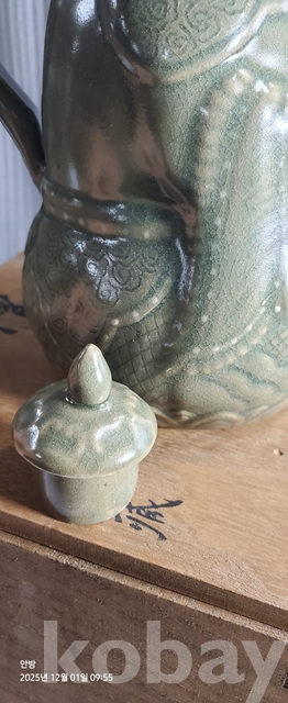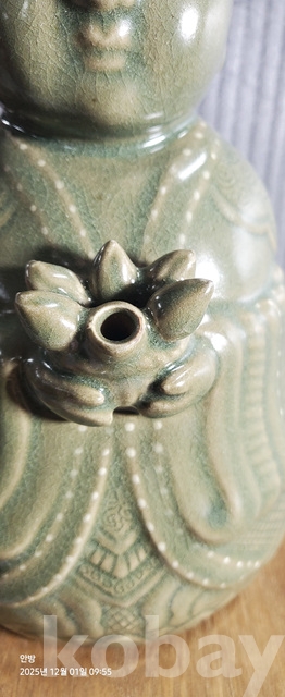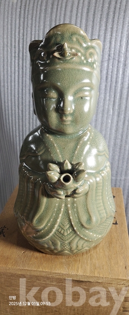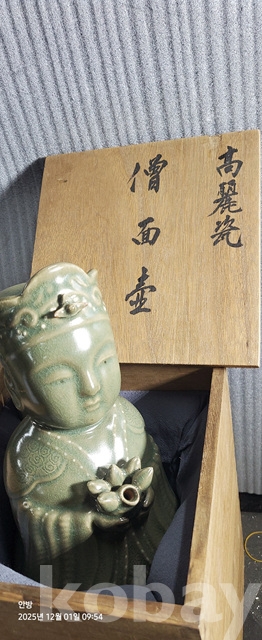 라-25.고급오동상자에담긴 발색이졸은 고려청자 부처님 정수병