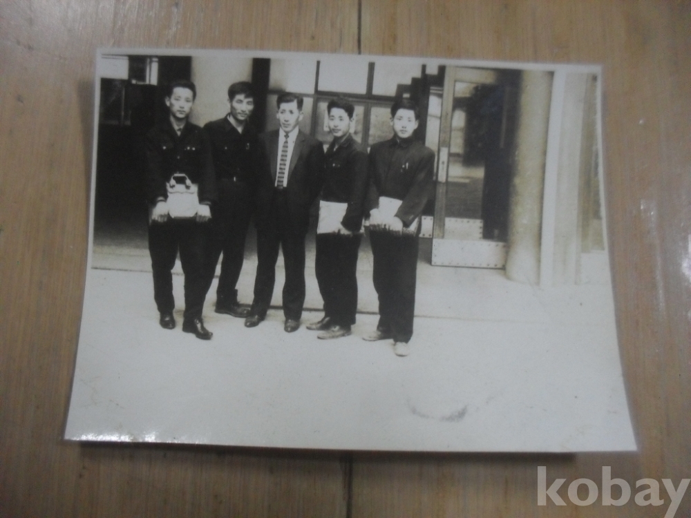 1312h)작은사진-60년대 건물현관에서 교수와 대학생들 사진.
