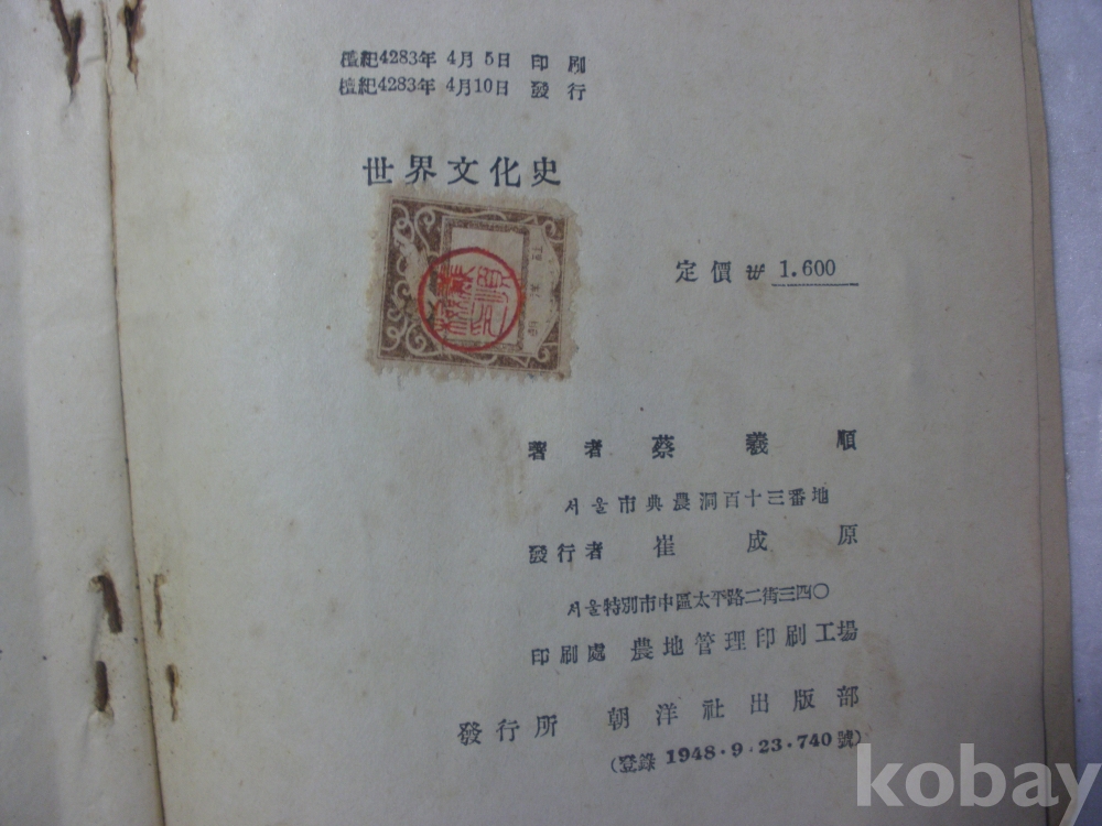 세계 문화사 (1950년, 채의순 저, 조양사)