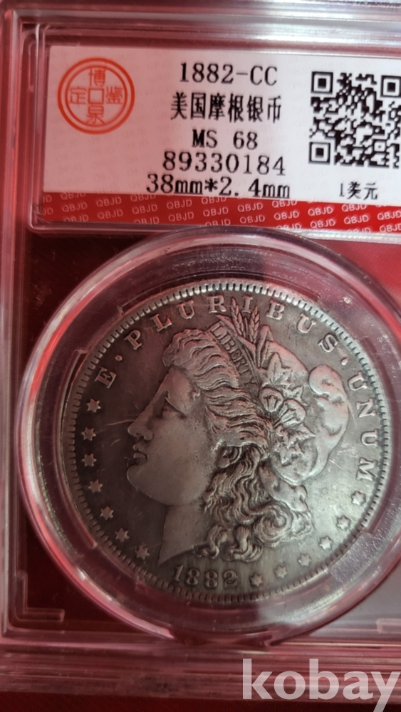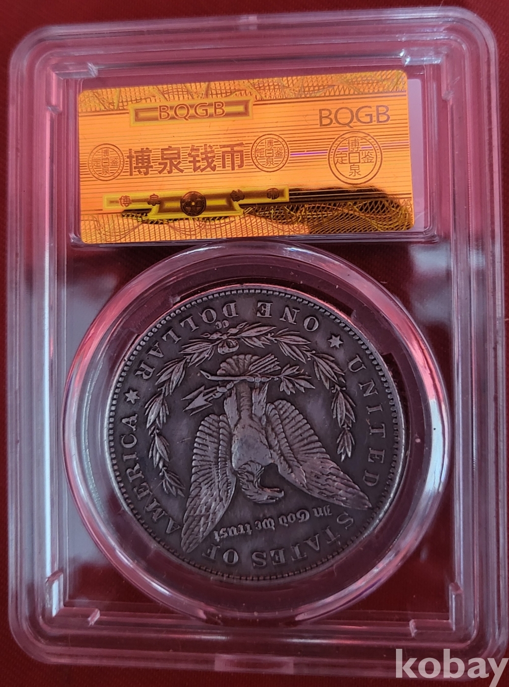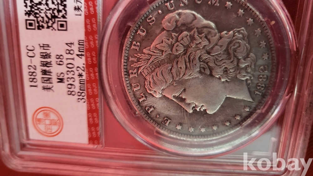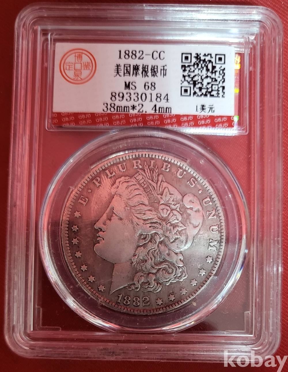1882 pluribus unum 표기가 보이는 은색 1달러 주화입니다,