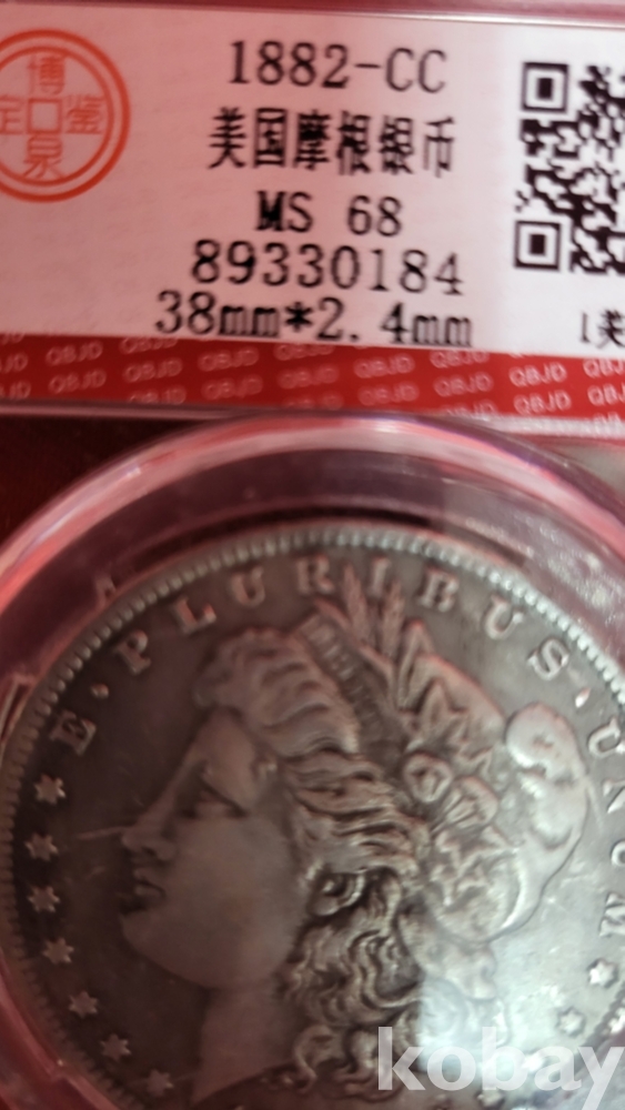 큐알코드(QR CODE)가 함께하는 은색 1달러 화패로 밀봉된 상태입니다,